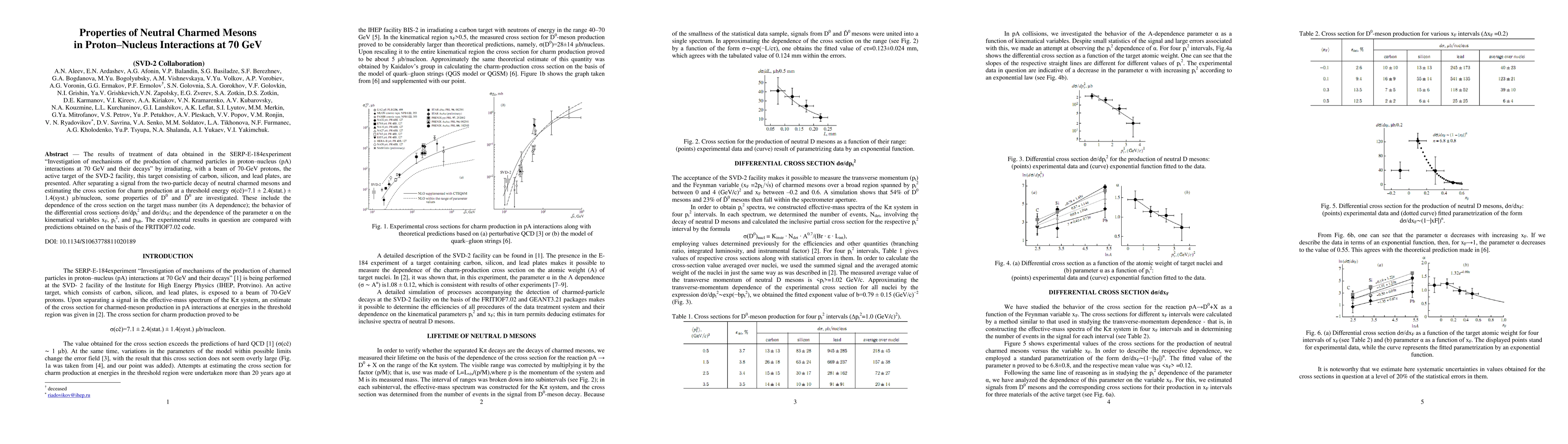 This paper reports on the production and properties of neutral charmed mesons in proton-nucleus interactions at 70 GeV, derived from the SERP-E-184 experiment. The study investigates the cross section for charm production, its dependence on target mass, and compares these findings with theoretical predictions from the FRITIOF7.02 code.