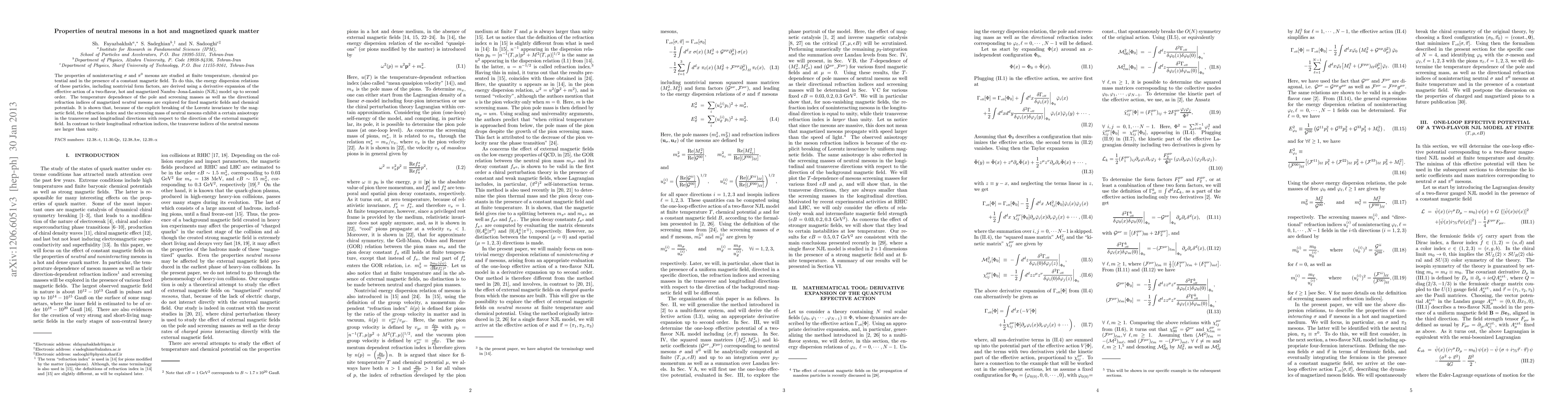 This paper investigates the properties of neutral $\sigma$ and $\pi^{0}$ mesons in hot, magnetized quark matter using a two-flavor Nambu-Jona-Lasinio model. It reveals anisotropic refraction indices and screening masses due to the magnetic field, with transverse indices exceeding unity.