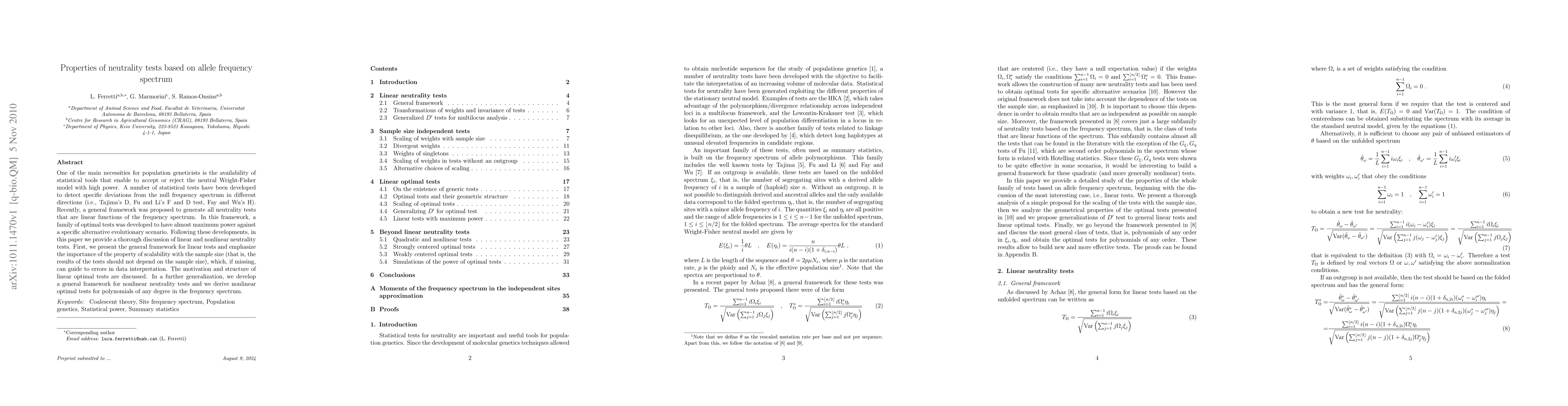 Researchers developed a framework for neutrality tests that can detect specific deviations from the neutral model with high power. They also derived nonlinear optimal tests for polynomials of any degree in the frequency spectrum.