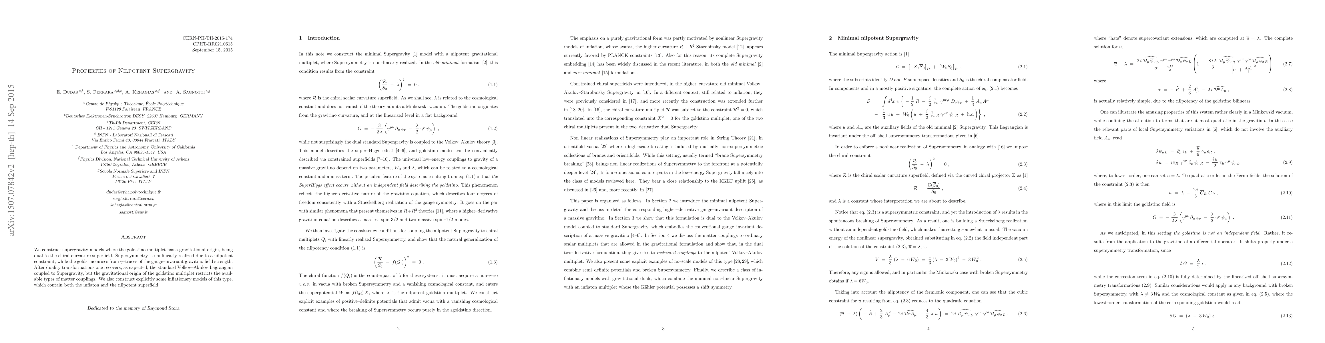 This paper constructs supergravity models where the goldstino multiplet originates from a gravitational chiral curvature superfield, with nonlinearly realized supersymmetry due to a nilpotent constraint. It also explores inflationary models incorporating both the inflaton and a nilpotent superfield.