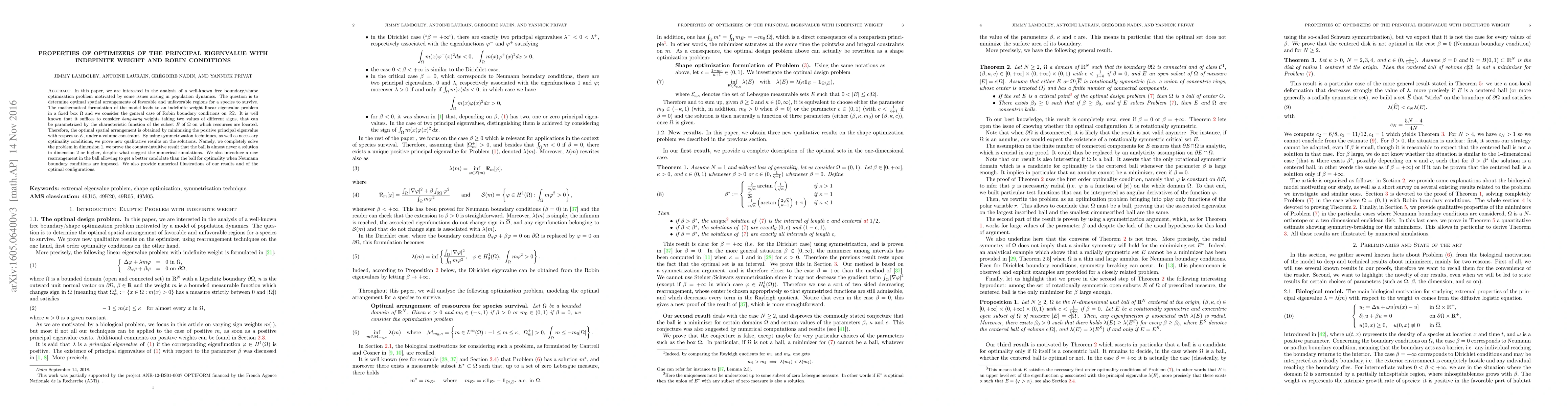 Researchers study the optimization of spatial arrangements for a species to survive in a fixed box with indefinite weight and Robin boundary conditions, finding counter-intuitive results in higher dimensions.
