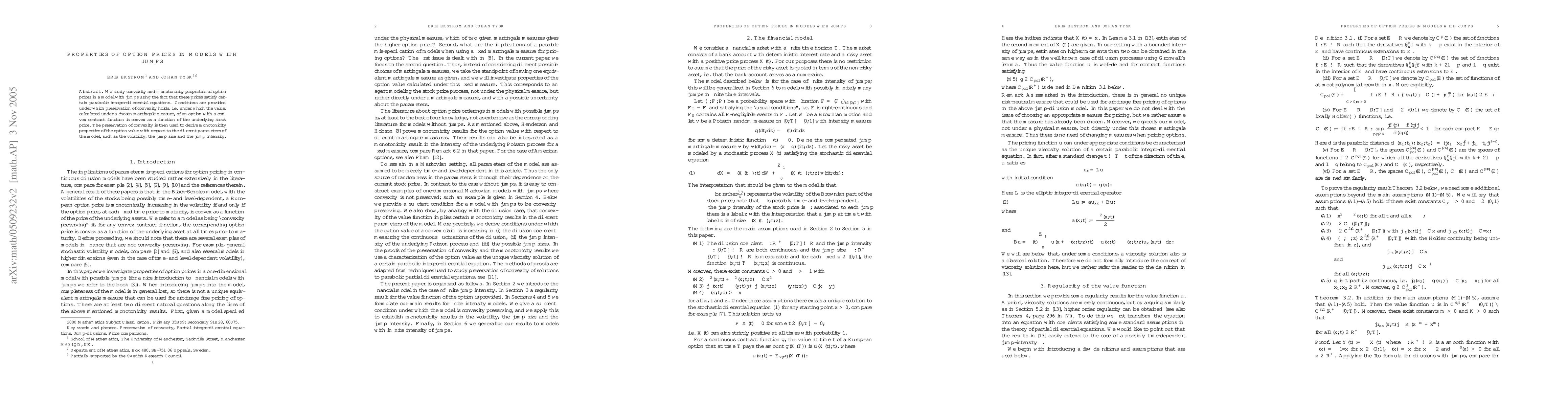 This study explores how option prices behave in a model with jumps, focusing on convexity and monotonicity properties. It provides conditions under which these properties hold and uses them to derive implications for the value of options.