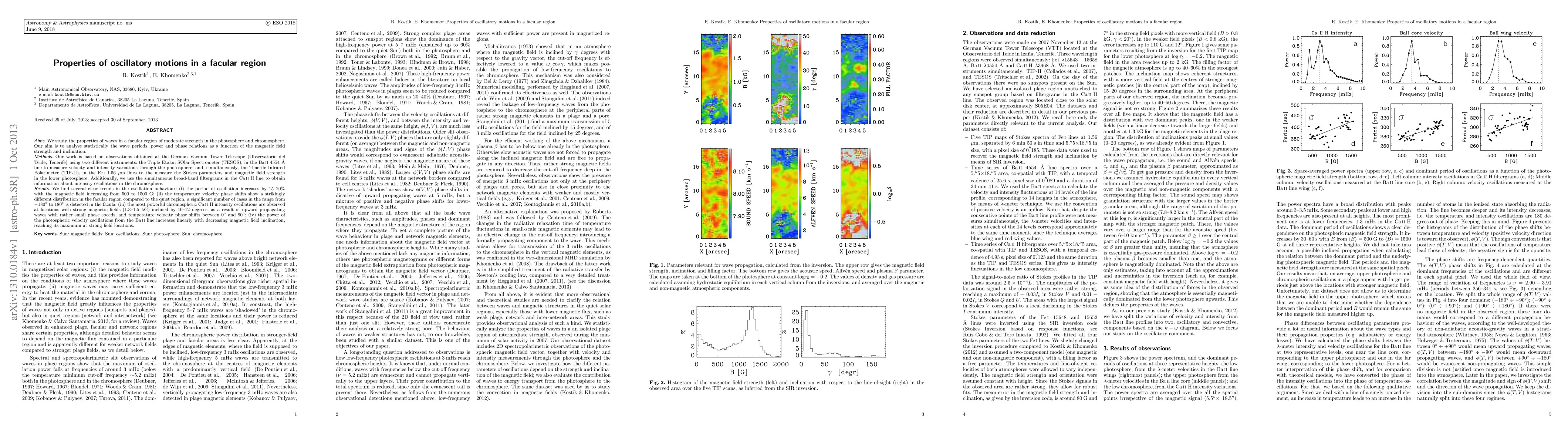 We study the properties of waves in a facular region of moderate strength in the photosphere and chromosphere. Our aim is to analyse statistically the wave periods, power and phase relations as a function of the magnetic field strength and inclination. Our work is based on observations obtained at the German Vacuum Tower Telescope (Observatorio del Teide, Tenerife) using two different instruments: the Triple Etalon SOlar Spectrometer (TESOS), in the BaII 4554 A line to measure velocity and intensity variations through the photosphere; and, simultaneously, the Tenerife Infrared Polarimeter (TIP-II), in the FeI 1.56 mm lines to the measure the Stokes parameters and magnetic field strength in the lower photosphere. Additionally, we use the simultaneous broad-band filtergrams in the CaIIH line to obtain information about intensity oscillations in the chromosphere. We find several clear trends in the oscillation behaviour: (i) the period of oscillation increases by 15-20 % with the magnetic field increasing from 500 to 1500 G; (ii) the temperature-velocity phase shifts show a strikingly different distribution in the facular region compared to the quiet region, a significant number of cases in the range from -180 to 180 degrees is detected in the facula. (iii) the most powerful chromospheric CaIIH intensity oscillations are observed at locations with strong magnetic fields (1.3-1.5 kG) inclined by 10-12 degrees, as a result of upward propagating waves with rather small phase speeds, and temperature-velocity phase shifts between 0 and 90 degrees; (iv) the power of the photospheric velocity oscillations from the \BaII\ line increases linearly with decreasing magnetic field inclination, reaching its maximum at strong field locations.