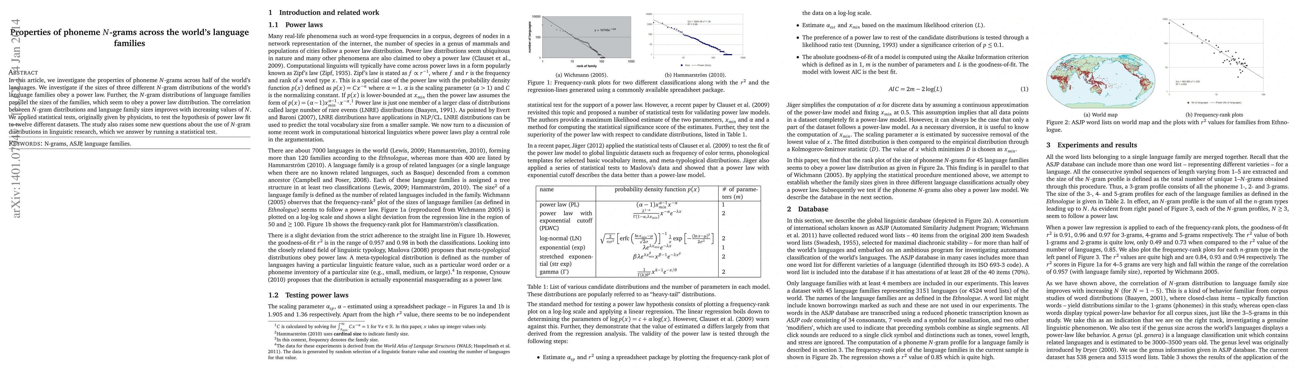 In this article, we investigate the properties of phoneme N-grams across half of the world's languages. We investigate if the sizes of three different N-gram distributions of the world's language families obey a power law. Further, the N-gram distributions of language families parallel the sizes of the families, which seem to obey a power law distribution. The correlation between N-gram distributions and language family sizes improves with increasing values of N. We applied statistical tests, originally given by physicists, to test the hypothesis of power law fit to twelve different datasets. The study also raises some new questions about the use of N-gram distributions in linguistic research, which we answer by running a statistical test.