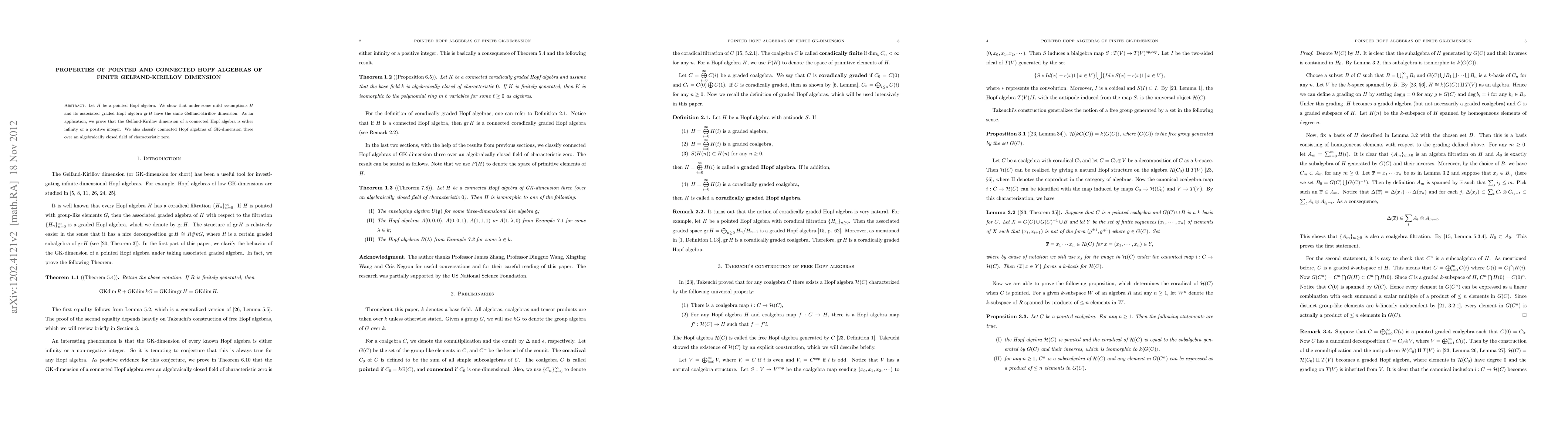 This paper investigates properties of pointed and connected Hopf algebras, demonstrating that under mild assumptions, these algebras and their associated graded counterparts share the same Gelfand-Kirillov dimension. It concludes that the Gelfand-Kirillov dimension of connected Hopf algebras is either infinite or a positive integer, and classifies those with dimension three over an algebraically closed field of characteristic zero.