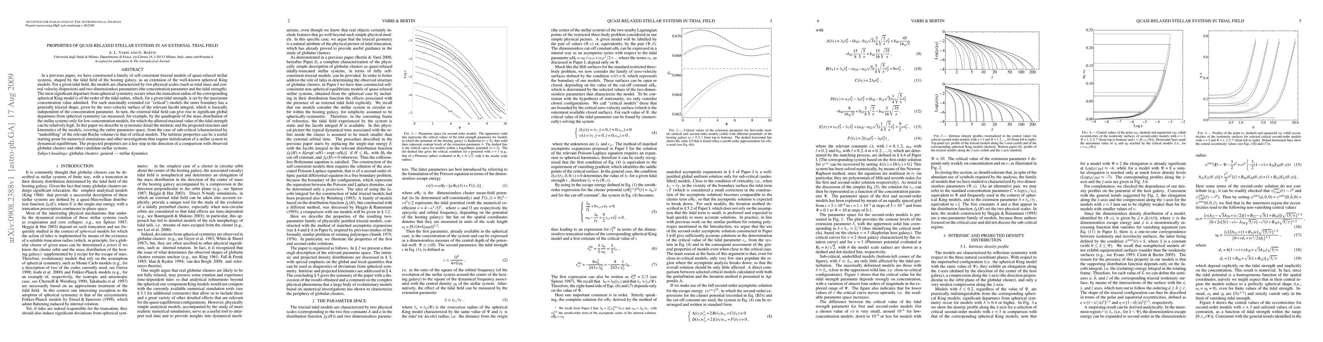 This paper constructs detailed triaxial models of quasi-relaxed stellar systems influenced by external tidal fields, providing intrinsic and projected structural and kinematic properties across the entire parameter space. These models, extending from sub-critical to critical configurations, offer valuable data for numerical simulations and comparisons with observed globular clusters.