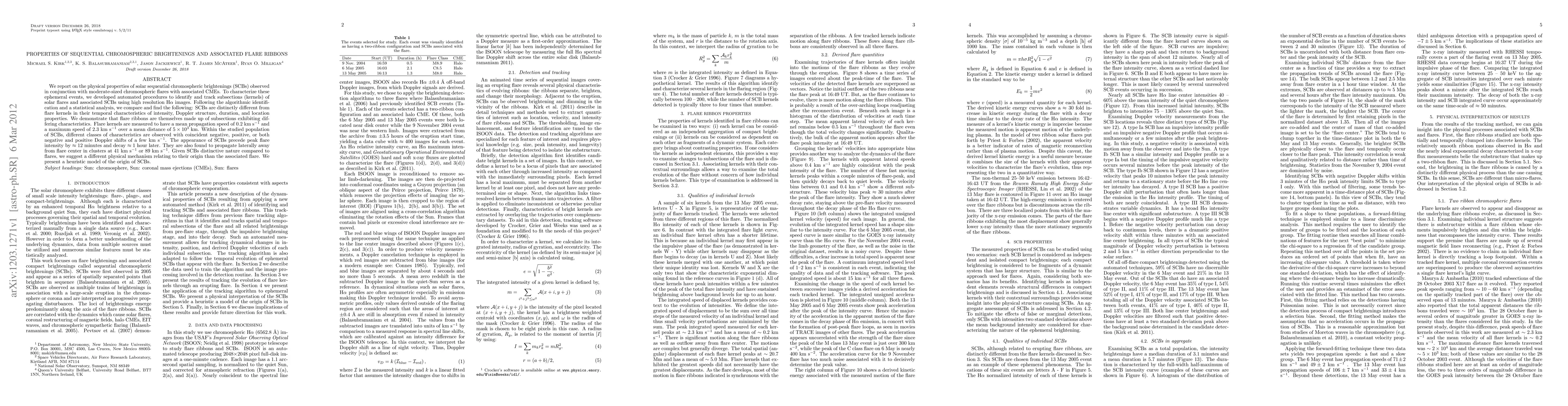 We report on the physical properties of solar sequential chromospheric brightenings (SCBs) observed in conjunction with moderate-sized chromospheric flares with associated CMEs. To characterize these ephemeral events, we developed automated procedures to identify and track subsections (kernels) of solar flares and associated SCBs using high resolution H-alpha images. Following the algorithmic identification and a statistical analysis, we compare and find the following: SCBs are distinctly different from flare kernels in their temporal characteristics of intensity, Doppler structure, duration, and location properties. We demonstrate that flare ribbons are themselves made up of subsections exhibiting differing characteristics. Flare kernels are measured to have a mean propagation speed of 0.2 km/s and a maximum speed of 2.3 km/s over a mean distance of 5 x 10^3 km. Within the studied population of SCBs, different classes of characteristics are observed with coincident negative, positive, or both negative and positive Doppler shifts of a few km/s. The appearance of SCBs precede peak flare intensity by ~12 minutes and decay ~1 hour later. They are also found to propagate laterally away from flare center in clusters at 41 km/s or 89 km/s. Given SCBs distinctive nature compared to flares, we suggest a different physical mechanism relating to their origin than the associated flare. We present a heuristic model of the origin of SCBs.