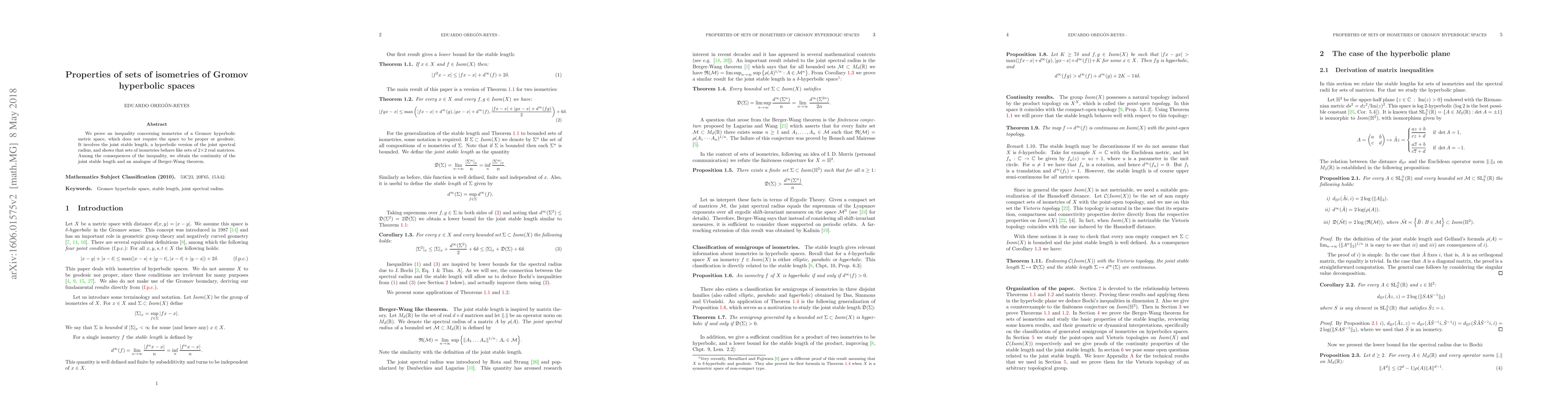 We prove an inequality concerning isometries of a Gromov hyperbolic metric space, which does not require the space to be proper or geodesic. It involves the joint stable length, a hyperbolic version of the joint spectral radius, and shows that sets of isometries behave like sets of $2 \times 2$ real matrices. Among the consequences of the inequality, we obtain the continuity of the joint stable length and an analogue of Berger-Wang theorem.