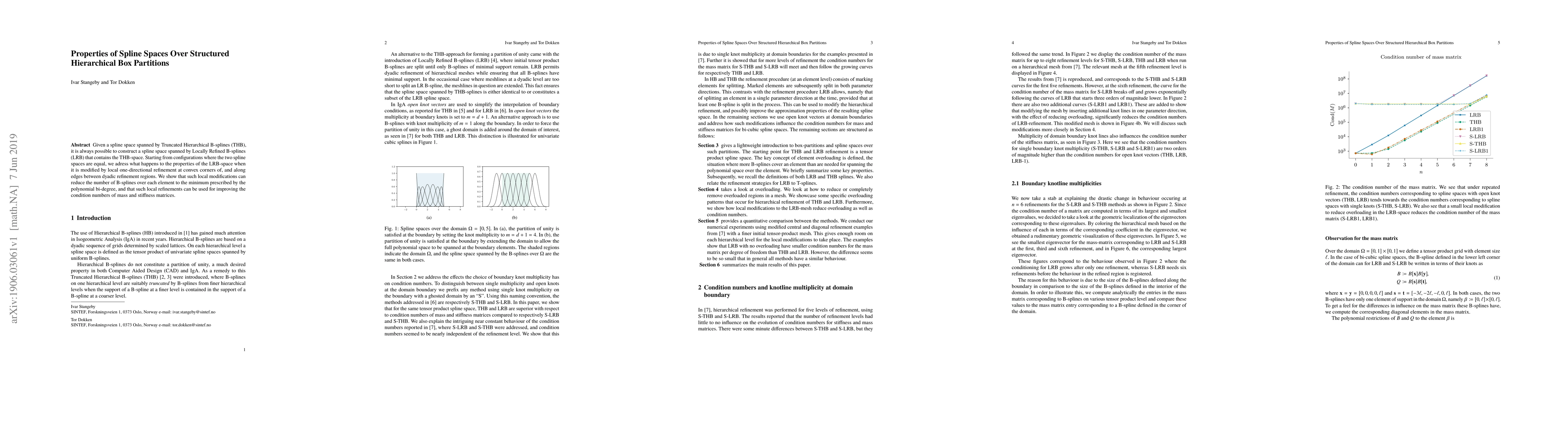 This paper explores the properties of spline spaces over structured hierarchical box partitions, demonstrating how locally refined B-splines can be constructed to contain truncated hierarchical B-splines. It shows that local refinements at convex corners and edges can minimize the number of B-splines while improving the condition numbers of mass and stiffness matrices.