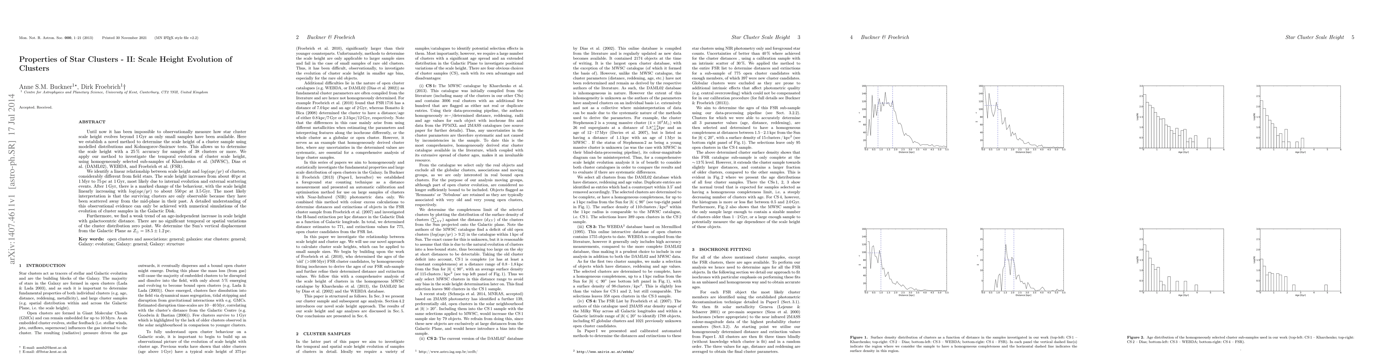 This paper introduces a novel method to measure the scale height evolution of star clusters beyond 1Gyr, revealing a linear increase from 40pc at 1Myr to 550pc at 3.5Gyr, likely due to internal evolution and external scattering. The study also finds a weak trend of scale height with galactocentric distance and determines the Sun's vertical displacement from the Galactic Plane as $Z_\odot=18.5\pm1.2$pc.