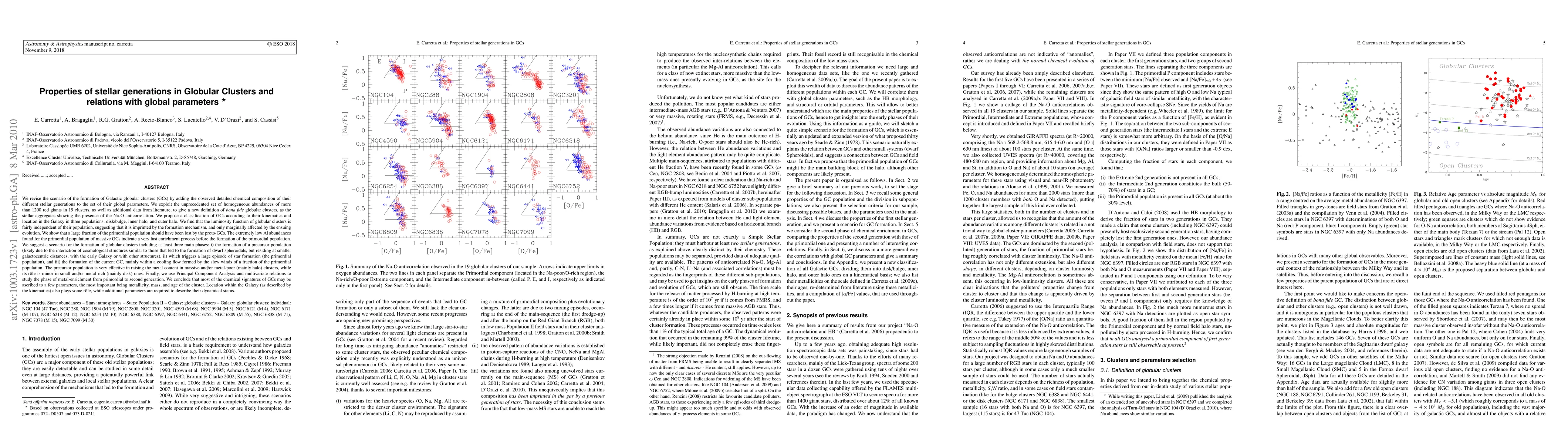 ABRIDGED) We revise the formation of Galactic GCs by adding the detailed chemical composition of their different stellar generations (from 1200 giants in 19 GCs) to their global parameters. We propose to identify as GCs those showing the Na-O anticorrelation, and we classify the GCs according to kinematics and location in the Galaxy in disk/bulge, inner, and outer halo. We find that the LF of GCs is fairly independent of their population, suggesting that it is imprinted by the formation mechanism, and only marginally affected by the ensuing evolution. We show that a large fraction of the primordial population should have been lost by the proto-GCs. The extremely low Al abundances found for the primordial population of massive GCs indicate a very fast enrichment process before the formation of the primordial population. We suggest a scenario for the formation of GCs including at least 3 main phases: i) the formation of a precursor population (likely due to the interaction of cosmological structures similar to those leading to dwarf spheroidals, but residing at smaller Rgc, with the early Galaxy or with other structures), ii) which triggers a large episode of star formation (the primordial population), and iii) the formation of the current GC, mainly within a cooling flow formed by the slow winds of a fraction of the primordial population. The precursor population is very effective in raising the metal content in massive and/or metal poor (mainly halo) clusters, while its role is minor in small and/or metal rich (mainly disk) ones. Finally, we use PCA and multivariate relations to study the phase of metal-enrichment from 1st to 2nd generation. Most of the chemical signatures of GCs may be ascribed to a few parameters, the most important being [Fe/H], mass, and age of the cluster, with the location within the Galaxy also playing some role.