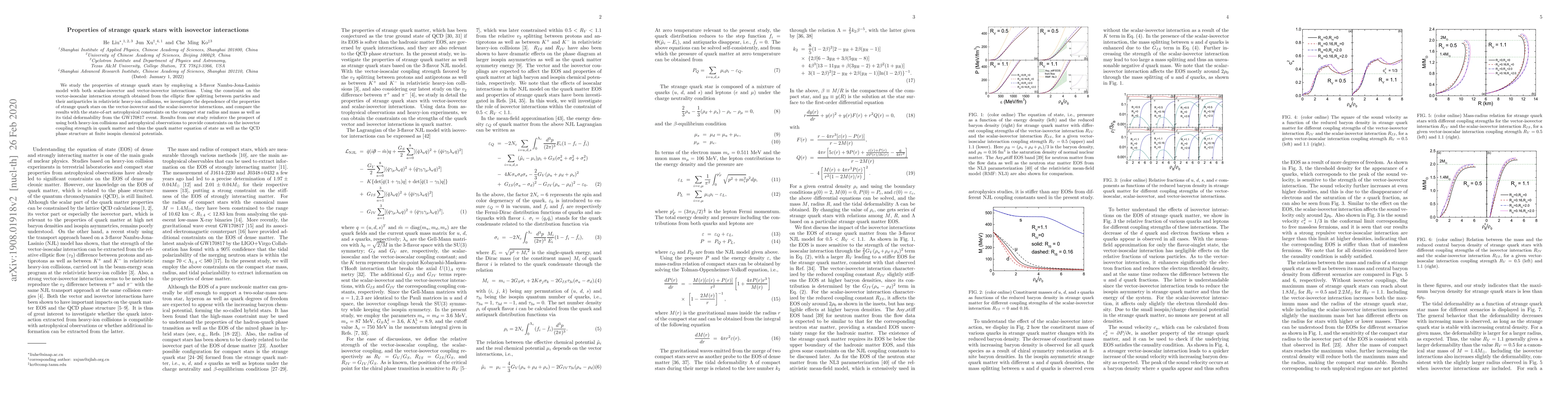We study the properties of strange quark stars by employing a 3-flavor Nambu-Jona-Lasinio model with both scalar-isovector and vector-isovector interactions. Using the constraint on the vector-isoscalar interaction strength obtained from the elliptic flow splitting between particles and their antiparticles in relativistic heavy-ion collisions, we investigate the dependence of the properties of strange quark stars on the vector-isovector and the scalar-isovector interactions, and compare the results with the state-of-art astrophysical constraints on the compact star radius and mass as well as its tidal deformability from the GW170817 event. Results from our study reinforce the prospect of using both heavy-ion collisions and astrophysical observations to provide constraints on the isovector coupling strength in quark matter and thus the quark matter equation of state as well as the QCD phase structure at finite isospin chemical potentials.