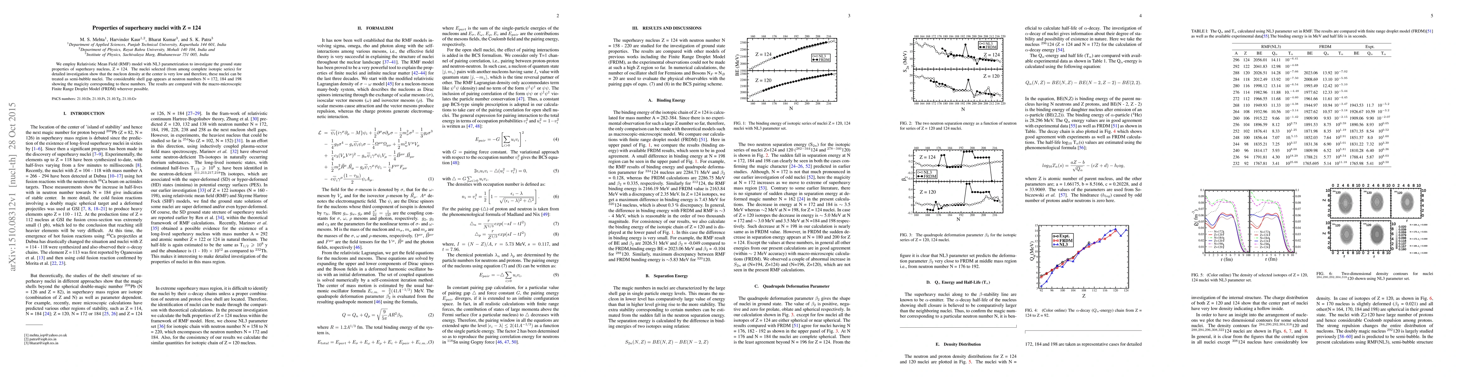 Researchers used a Relativistic Mean Field model to study superheavy nucleus Z=124, finding it has a low nucleon density and shell gaps at specific neutron numbers, with implications for nuclear magicity.