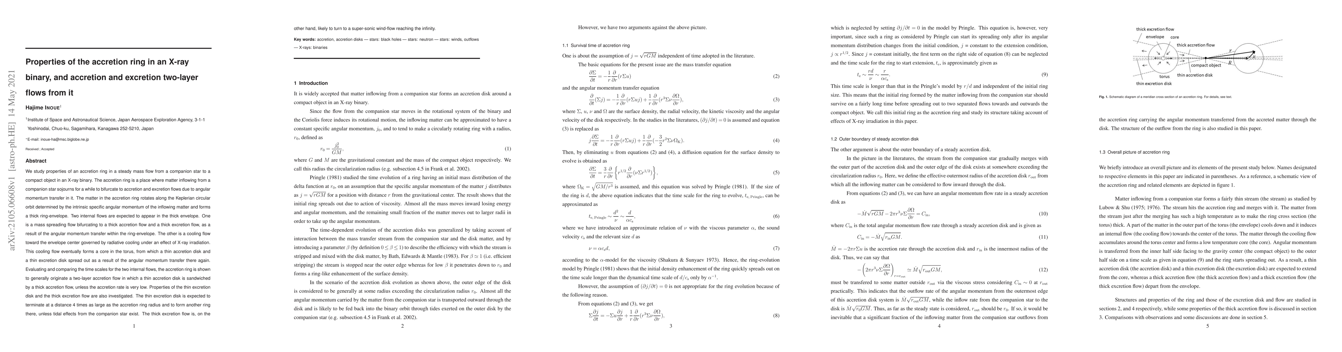 This paper investigates the properties of an accretion ring in an X-ray binary, focusing on the bifurcation of mass flows into accretion and excretion due to angular momentum transfer. It reveals that the accretion ring generally produces a two-layer flow structure, with a thin accretion disk sandwiched between a thick accretion flow, and explores the characteristics of thin and thick excretion disks and flows.