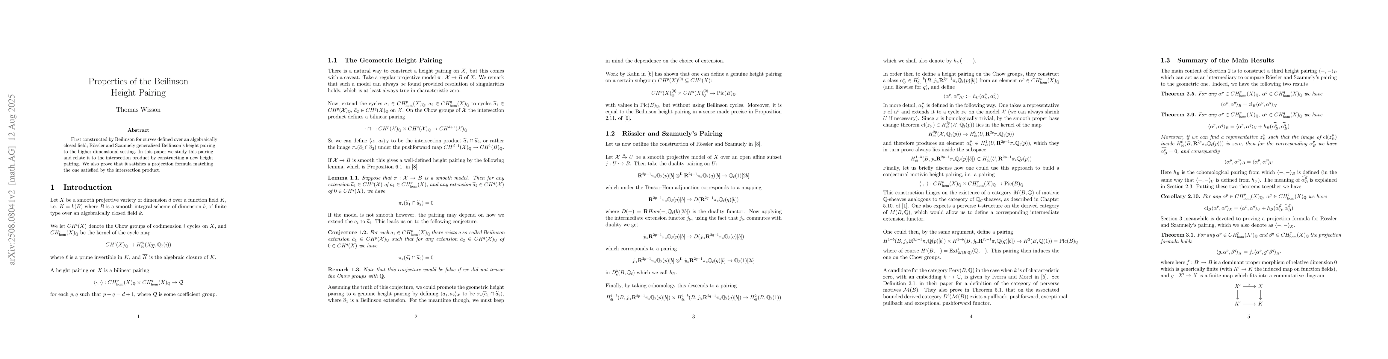 First constructed by Beilinson for curves defined over an algebraically closed field; R\"ossler and Szamuely generalized Beilinson's height pairing to the higher dimensional setting. In this paper we study this pairing and relate it to the intersection product by constructing a new height pairing. We also prove that it satisfies a projection formula matching the one satisfied by the intersection product.