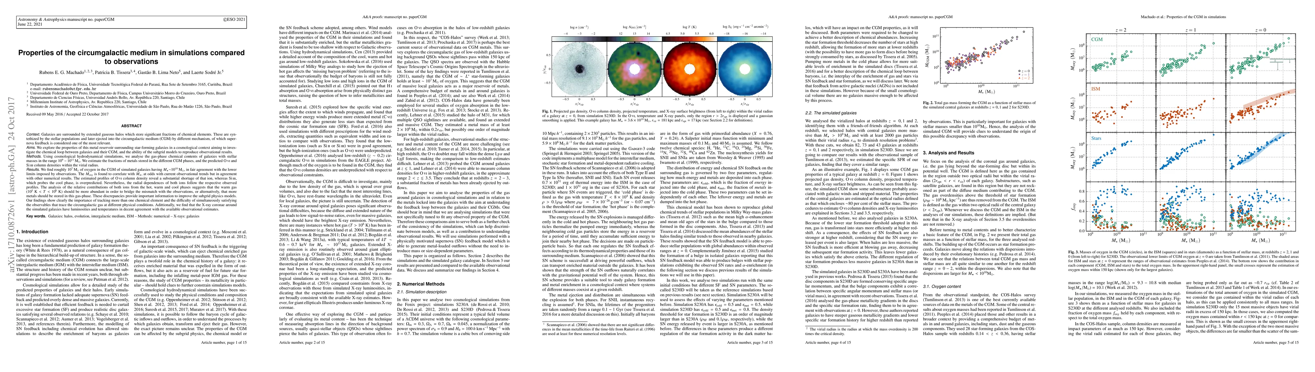 Galaxies are surrounded by extended gaseous halos which store significant fractions of chemical elements. These are syntethized by the stellar populations and later ejected into the circumgalactic medium (CGM) by different mechanism, of which supernova feedback is considered one of the most relevant. We explore the properties of this metal reservoir surrounding star-forming galaxies in a cosmological context aiming to investigate the chemical loop between galaxies and their CGM, and the ability of the subgrid models to reproduce observational results. Using cosmological hydrodynamical simulations, we analyse the gas-phase chemical contents of galaxies with stellar masses in the range $10^{9} - 10^{11}\,{\rm M}_{\odot}$. We estimate the fractions of metals stored in the different CGM phases, and the predicted OVI and SiIII column densities within the virial radius. We find roughly $10^{7}\,{\rm M}_{\odot}$ of oxygen in the CGM of simulated galaxies having $M_{\star}{\sim}10^{10}\,{\rm M}_{\odot}$, in fair agreement with the lower limits imposed by observations. The $M_{\rm oxy}$ is found to correlate with $M_{\star}$, at odds with current observational trends but in agreement with other numerical results. The estimated profiles of OVI column density reveal a substantial shortage of that ion, whereas SiIII, which probes the cool phase, is overpredicted. The analysis of the relative contributions of both ions from the hot, warm and cool phases suggests that the warm gas ($ 10^5~{\rm K} < T < 10^6~{\rm K}$) should be more abundant in order to bridge the mismatch with the observations, or alternatively, that more metals should be stored in this gas-phase. Adittionally, we find that the X-ray coronae around the simulated galaxies have luminosities and temperatures in decent agreement with the available observational estimates. [abridged]