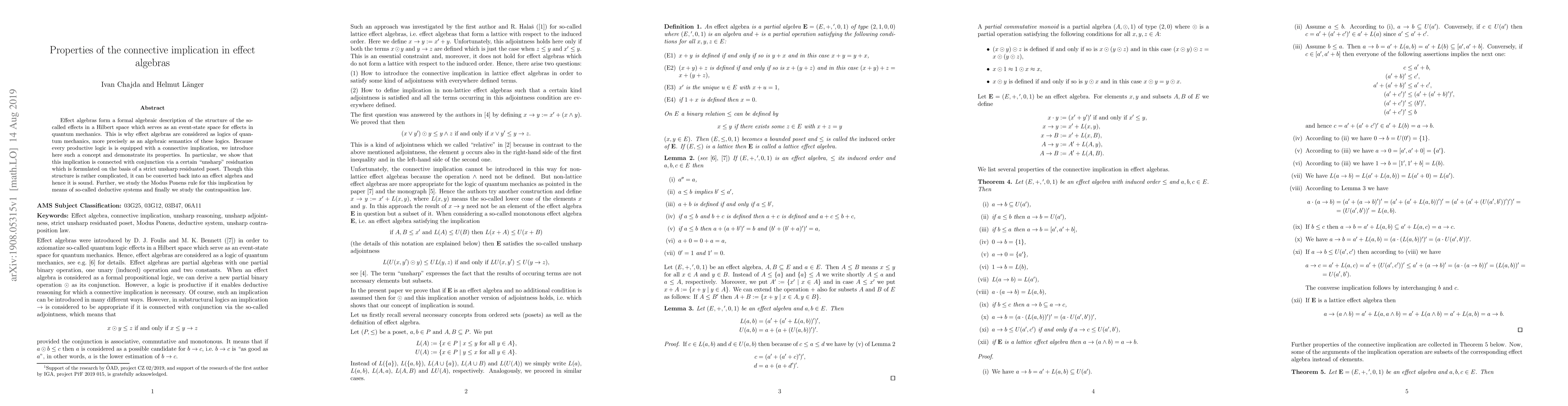 This paper explores the properties of the connective implication within effect algebras, which serve as an algebraic semantics for quantum mechanics. It demonstrates the connection between implication and conjunction through an "unsharp" residuation and studies the Modus Ponens rule and contraposition law within this framework.
