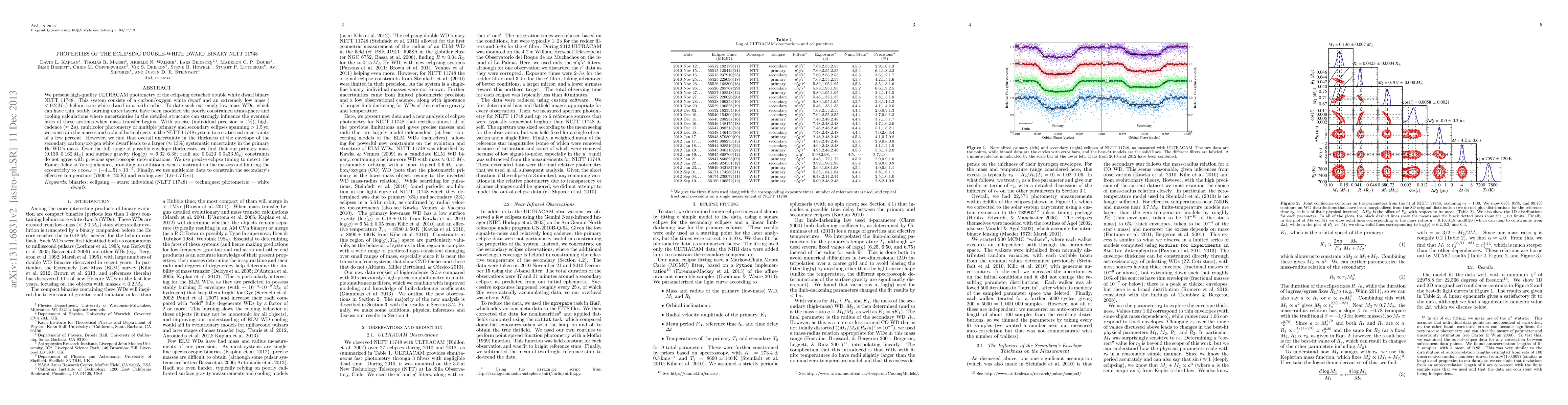 This study uses high-precision ULTRACAM photometry to analyze the eclipsing double-white dwarf binary NLTT 11748, revealing precise mass and radius measurements for both components. The primary helium-core white dwarf exhibits a significant systematic uncertainty due to the secondary's envelope thickness, challenging previous spectroscopic determinations.