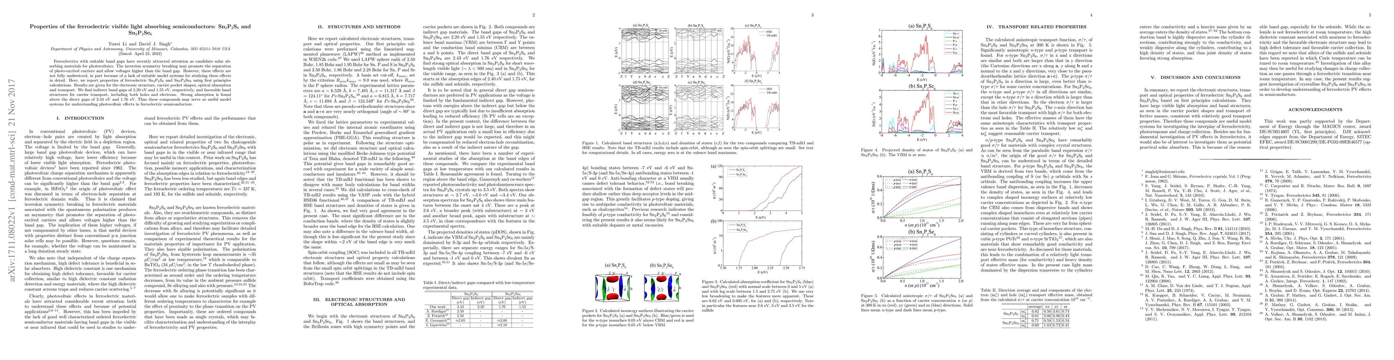 Researchers studied two ferroelectric semiconductors, Sn2P2S6 and Sn2P2Se6, finding suitable band gaps for solar absorption and favorable transport properties.