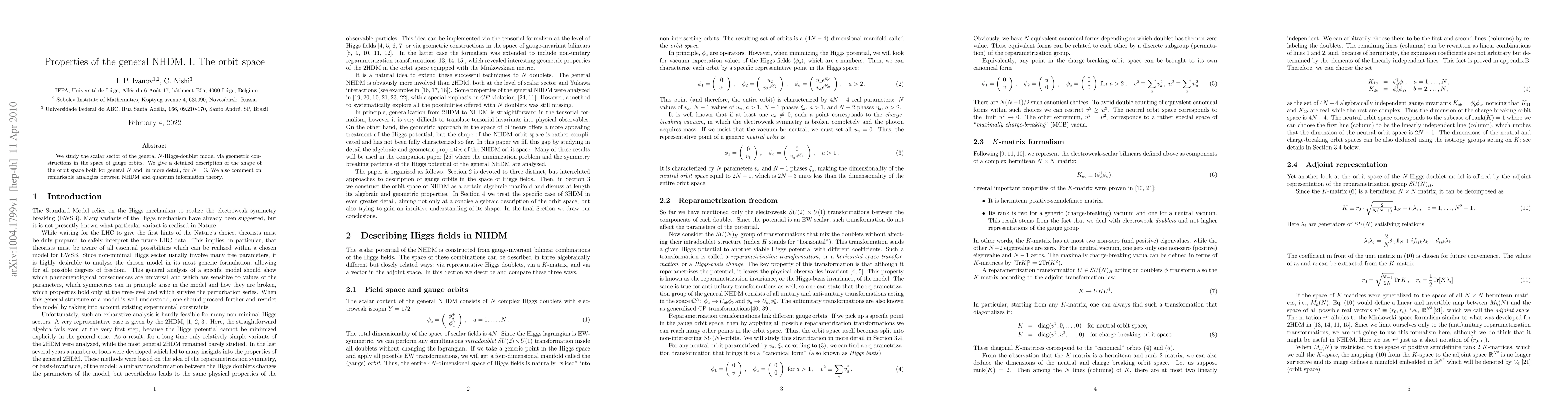 We study the scalar sector of the general N-Higgs-doublet model via geometric constructions in the space of gauge orbits. We give a detailed description of the shape of the orbit space both for general N and, in more detail, for N=3. We also comment on remarkable analogies between NHDM and quantum information theory.