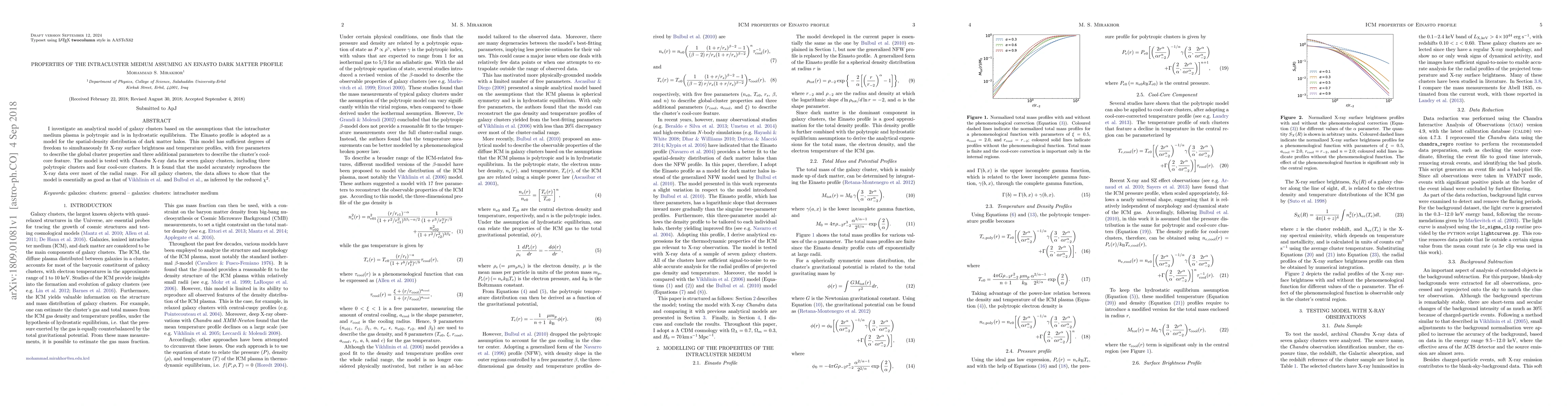 This research presents an analytical model for galaxy clusters assuming a polytropic intracluster medium in hydrostatic equilibrium and an Einasto dark matter profile. Tested with Chandra X-ray data from seven clusters, the model successfully fits X-ray surface brightness and temperature profiles, demonstrating comparable accuracy to previous models by Vikhlinin et al and Bulbul et al.