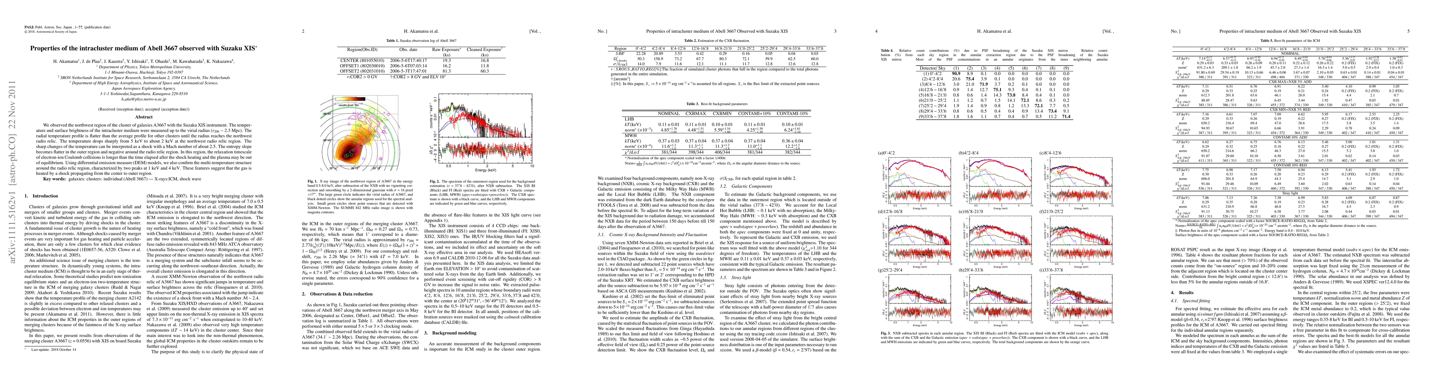 We observed the northwest region of the cluster of galaxies A3667 with the Suzaku XIS instrument. The temperature and surface brightness of the intracluster medium were measured up to the virial radius (r200-2.3 Mpc). The radial temperature profile is flatter than the average profile for other clusters until the radius reaches the northwest radio relic. The temperature drops sharply from 5 keV to about 2 keV at the northwest radio relic region. The sharp changes of the temperature can be interpreted as a shock with a Mach number of about 2.5. The entropy slope becomes flatter in the outer region and negative around the radio relic region. In this region, the relaxation timescale of electron-ion Coulomb collisions is longer than the time elapsed after the shock heating and the plasma may be out of equilibrium. Using differential emission measure (DEM) models, we also confirm the multi-temperature structure around the radio relic region, characterized by two peaks at 1 keV and 4 keV. These features suggest that the gas is heated by a shock propagating from the center to outer region.