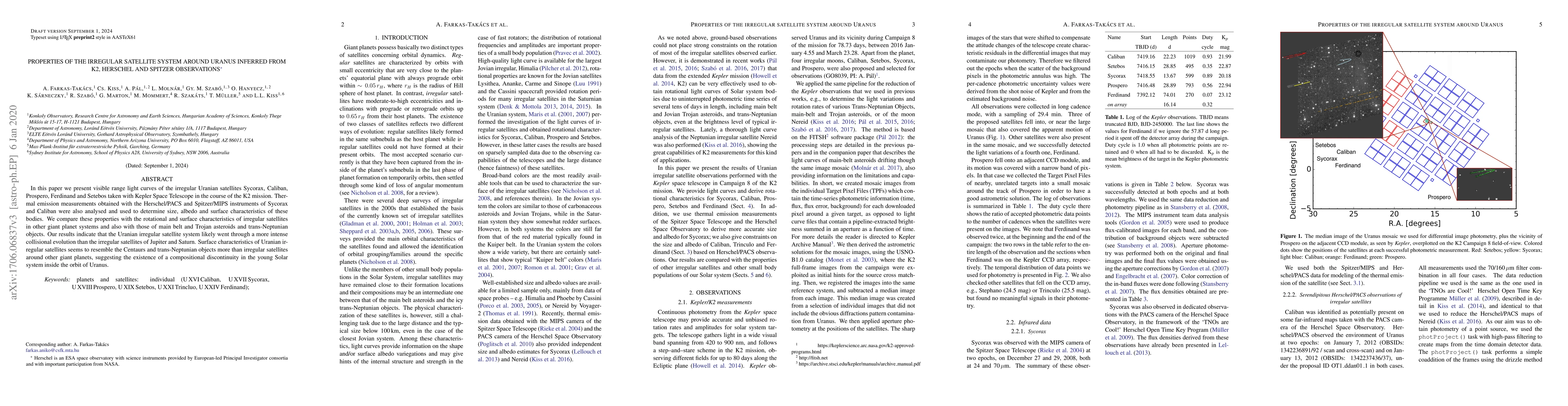 In this paper we present visible range light curves of the irregular Uranian satellites Sycorax, Caliban, Prospero, Ferdinand and Setebos taken with Kepler Space Telescope in the course of the K2 mission. Thermal emission measurements obtained with the Herschel/PACS and Spitzer/MIPS instruments of Sycorax and Caliban were also analysed and used to determine size, albedo and surface characteristics of these bodies. We compare these properties with the rotational and surface characteristics of irregular satellites in other giant planet systems and also with those of main belt and Trojan asteroids and trans-Neptunian objects. Our results indicate that the Uranian irregular satellite system likely went through a more intense collisional evolution than the irregular satellites of Jupiter and Saturn. Surface characteristics of Uranian irregular satellites seems to resemble the Centaurs and trans-Neptunian objects more than irregular satellites around other giant planets, suggesting the existence of a compositional discontinuity in the young Solar system inside the orbit of Uranus.