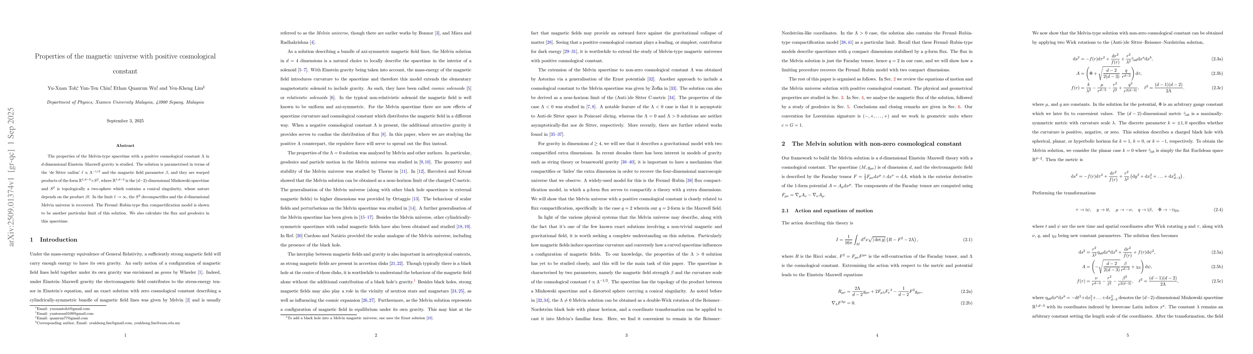 The properties of the Melvin-type spacetime with a positive cosmological constant $\Lambda$ in $d$-dimensional Einstein--Maxwell gravity is studied. The solution is parametrised in terms of the `de Sitter radius' $\ell\propto\Lambda^{-1/2}$ and the magnetic field parameter $\beta$, and they are warped products of the form $\mathbb{R}^{1,d-3}\times S^2$, where $\mathbb{R}^{1,d-3}$ is the $(d-2)$-dimensional Minkowski spacetime and $S^2$ is topologically a two-sphere which contains a conical singularity, whose nature depends on the product $\beta\ell$. In the limit $\ell\rightarrow\infty$, the $S^2$ decompactifies and the $d$-dimensional Melvin universe is recovered. The Freund--Rubin-type flux compactification model is shown to be another particular limit of this solution. We also calculate the flux and geodesics in this spacetime.