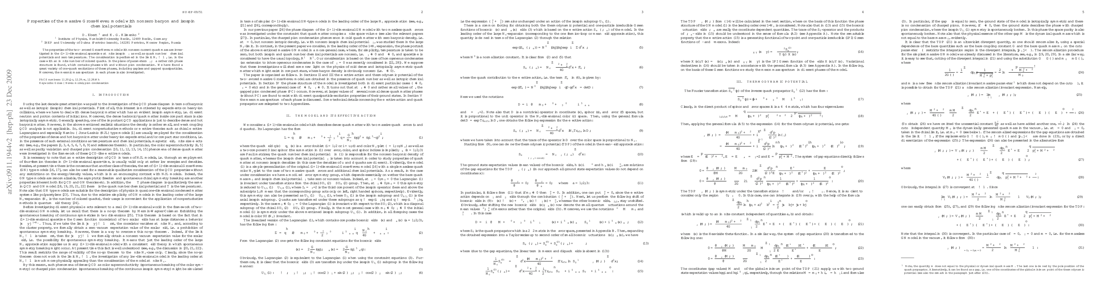 This paper investigates the phase structure of the massive Gross-Neveu model in (1+1) dimensions with finite isospin and baryon chemical potentials, revealing diverse phases including pion condensation and various one-quark excitations, alongside a detailed study of the mesonic mass spectrum.