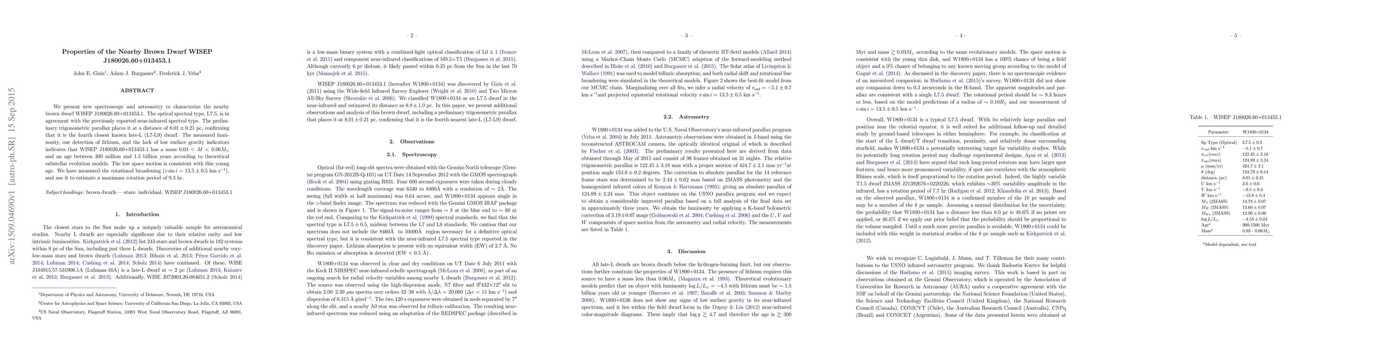 We present new spectroscopy and astrometry to characterize the nearby brown dwarf WISEP J180026.60+013453.1. The optical spectral type, L7.5, is in agreement with the previously reported near-infrared spectral type. The preliminary trigonometric parallax places it at a distance of $8.01 \pm 0.21$ pc, confirming that it is the fourth closest known late-L (L7-L9) dwarf. The measured luminosity, our detection of lithium, and the lack of low surface gravity indicators indicates that WISEP J180026.60+013453.1 has a mass $0.03 < M < 0.06 M_\odot$ and an age between 300 million and 1.5 billion years according to theoretical substellar evolution models. The low space motion is consistent with this young age. We have measured the rotational broadening ($v \sin i = 13.5 \pm 0.5$ km/s), and use it to estimate a maximum rotation period of 9.3 hr.