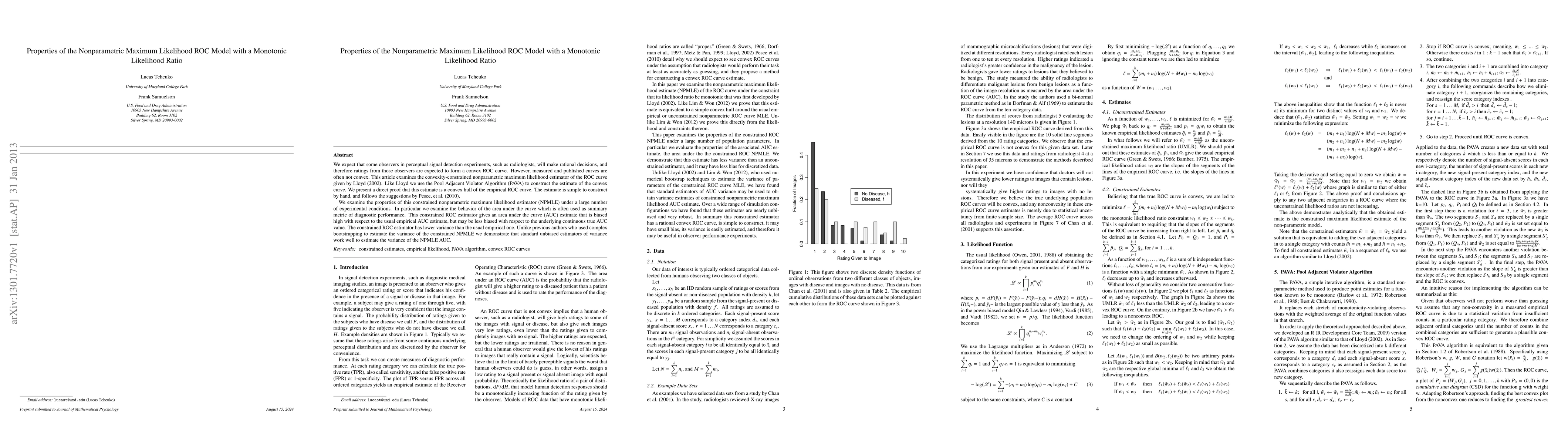 This paper investigates the convexity-constrained nonparametric maximum likelihood estimator (NPMLE) for ROC curves, showing it is a convex hull of empirical data and has lower variance than the usual empirical ROC estimate. The constrained NPMLE provides a biased but potentially more accurate estimate of the area under the curve (AUC) compared to the true continuous AUC value.