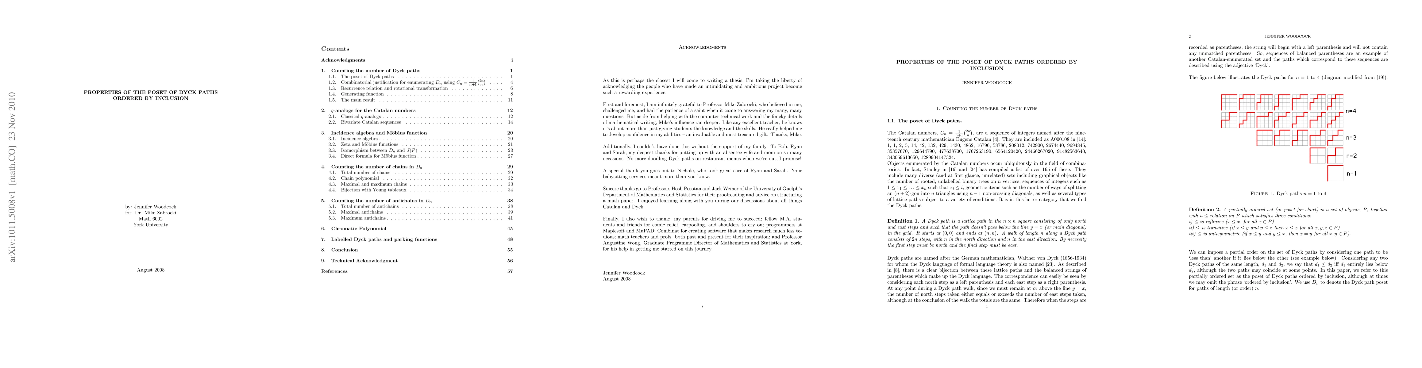 An expository summary of properties of the poset of Dyck paths ordered by inclusion.