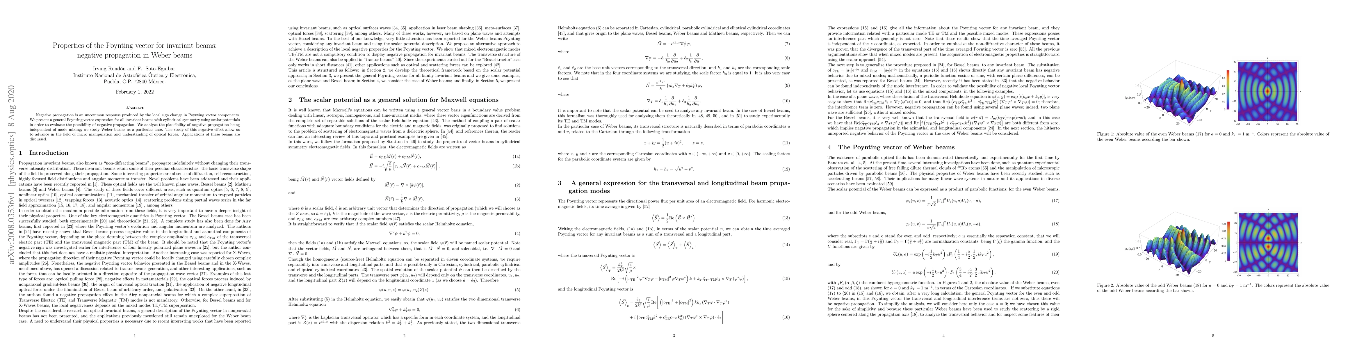 This paper investigates the uncommon phenomenon of negative propagation in Weber beams, characterized by a local sign change in the Poynting vector components. It derives a general expression for the Poynting vector in invariant beams with cylindrical symmetry and explores the potential for negative propagation independent of mode mixing, with implications for micro manipulation and optical forces.