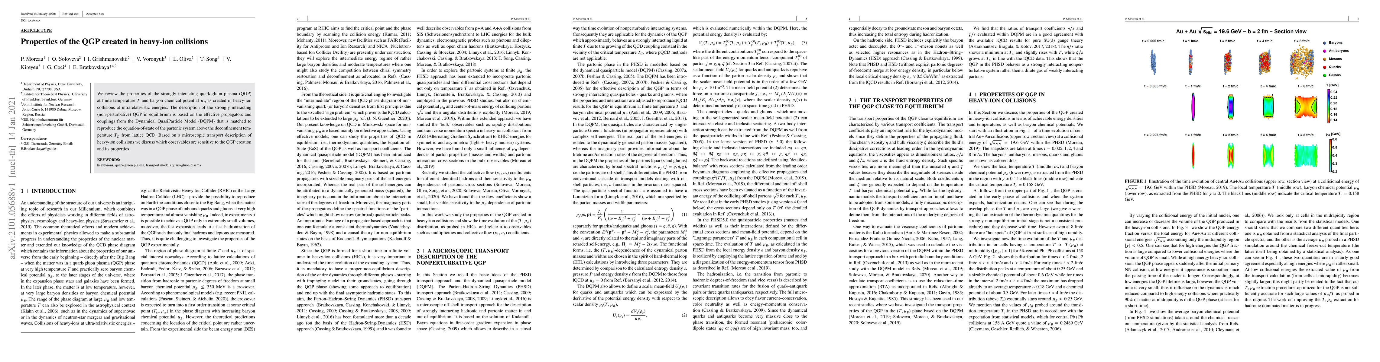 This paper reviews the properties of quark-gluon plasma (QGP) formed in heavy-ion collisions, focusing on its non-perturbative nature at finite temperature and baryon chemical potential. It employs the Dynamical QuasiParticle Model (DQPM) to describe the QGP and discusses how various observables indicate the creation and characteristics of the QGP.