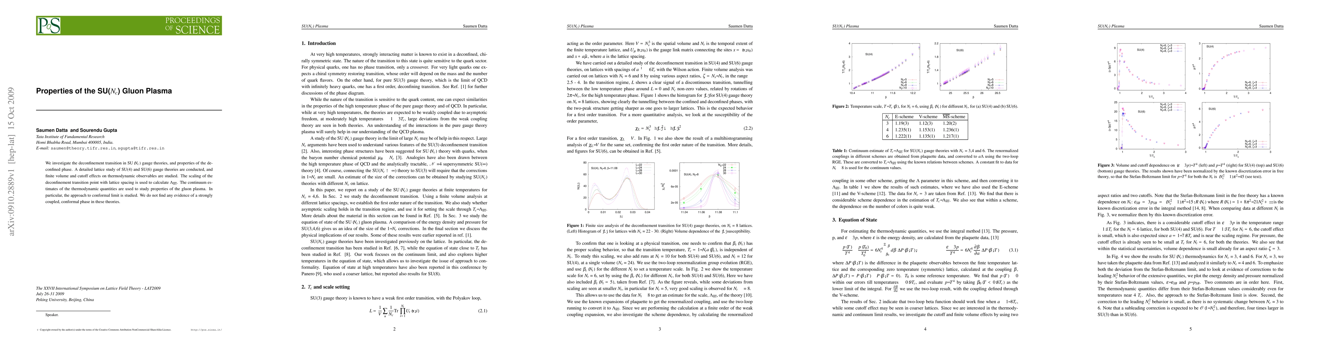 We investigate the deconfinement transition in SU(Nc) gauge theories, and properties of the deconfined phase. A detailed lattice study of SU(4) and SU(6) gauge theories are conducted, and finite volume and cutoff effects on thermodynamic observables are studied. The scaling of the deconfinement transition point with lattice spacing is used to calculate the scale, Lambda_MSbar. The continuum estimates of the thermodynamic quantities are used to study properties of the gluon plasma. In particular, the approach to conformal limit is studied. We do not find any evidence of a strongly coupled, conformal phase in these theories.