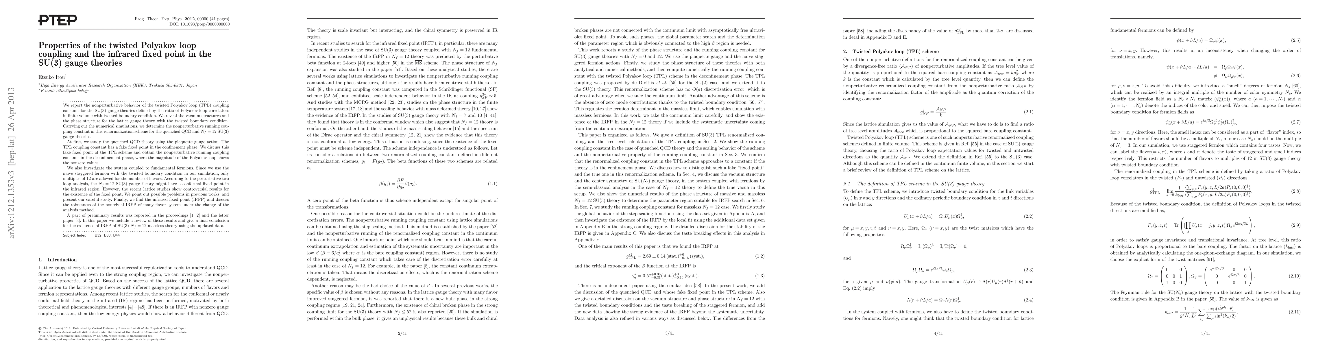 We report the nonperturbative behavior of the twisted Polyakov loop (TPL) coupling constant for the SU(3) gauge theories defined by the ratio of Polyakov loop correlators in finite volume with twisted boundary condition. We reveal the vacuum structures and the phase structure for the lattice gauge theory with the twisted boundary condition. Carrying out the numerical simulations, we determine the nonperturbative running coupling constant in this renormalization scheme for the quenched QCD and Nf=12 SU(3) gauge theories. At first, we study the quenched QCD theory using the plaquette gauge action. The TPL coupling constant has a fake fixed point in the confinement phase. We discuss this fake fixed point of the TPL scheme and obtain the nonperturbative running coupling constant in the deconfinement phase, where the magnitude of the Polyakov loop shows the nonzero values. We also investigate the system coupled to fundamental fermions. Since we use the naive staggered fermion with the twisted boundary condition in our simulation, only multiples of 12 are allowed for the number of flavors. According to the perturbative two loop analysis, the Nf=12 SU(3) gauge theory might have a conformal fixed point in the infrared region. However, the recent lattice studies show controversial results for the existence of the fixed point. We point out possible problems in previous works, and present our careful study. Finally, we find the infrared fixed point (IRFP) and discuss the robustness of the nontrivial IRFP of many flavor system under the change of the analysis method. A part of preliminary results was reported in the proceedings [1, 2] and the letter paper [3]. In this paper we include a review of these results and give a final conclusion for the existence of IRFP of SU(3) Nf = 12 massless theory using the updated data.