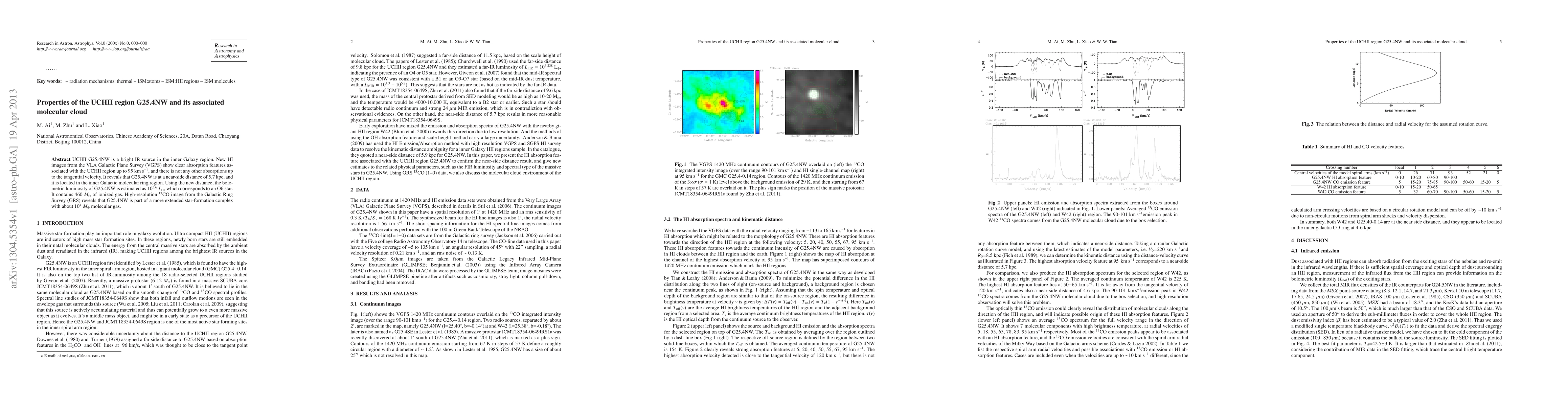 UCHII G25.4NW is a bright IR source in the inner Galaxy region. New HI images from the VLA Galactic Plane Survey (VGPS) show clear absorption features associated with the UCHII region up to 95 km s$^{-1}$, and there is not any other absorptions up to the tangential velocity. It reveals that G25.4NW is at a near-side distance of 5.7 kpc, and it is located in the inner Galactic molecular ring region. Using the new distance, the bolometric luminosity of G25.4NW is estimated as $10^{5.6} L_{\odot}$, which corresponds to an O6 star. It contains 460 $M_{\odot}$ of ionized gas. High-resolution $^{13}$CO image from the Galactic Ring Survey (GRS) reveals that G25.4NW is part of a more extended star-formation complex with about $10^{4} M_{\odot}$ molecular gas.