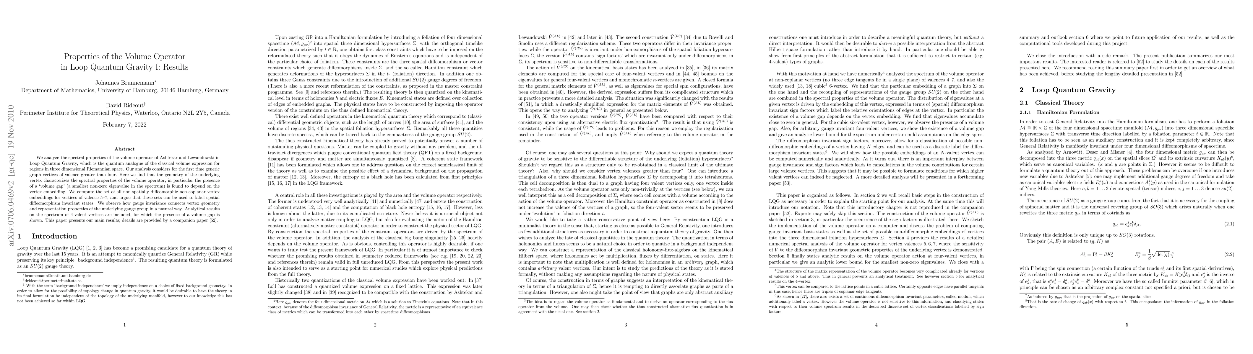 We analyze the spectral properties of the volume operator of Ashtekar and Lewandowski in Loop Quantum Gravity, which is the quantum analogue of the classical volume expression for regions in three dimensional Riemannian space. Our analysis considers for the first time generic graph vertices of valence greater than four. Here we find that the geometry of the underlying vertex characterizes the spectral properties of the volume operator, in particular the presence of a `volume gap' (a smallest non-zero eigenvalue in the spectrum) is found to depend on the vertex embedding. We compute the set of all non-spatially diffeomorphic non-coplanar vertex embeddings for vertices of valence 5--7, and argue that these sets can be used to label spatial diffeomorphism invariant states. We observe how gauge invariance connects vertex geometry and representation properties of the underlying gauge group in a natural way. Analytical results on the spectrum on 4-valent vertices are included, for which the presence of a volume gap is proved. This paper presents our main results; details are provided by a companion paper arXiv:0706.0382v1.