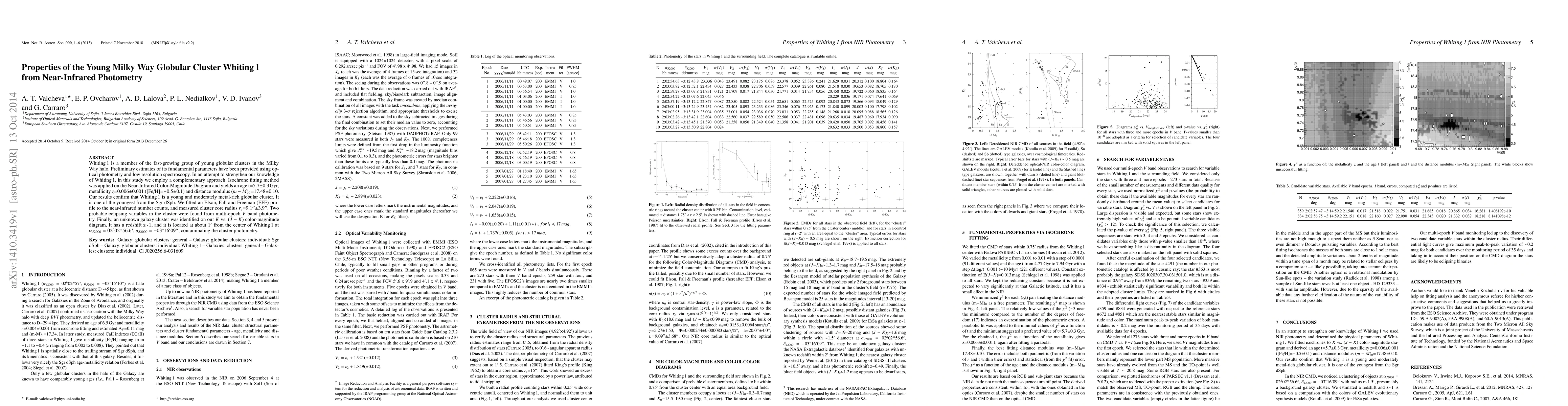 This study uses near-infrared photometry to determine the properties of the young Milky Way globular cluster Whiting 1, finding an age of 5.7±0.3 Gyr, moderate metallicity, and a core radius of 9.1±3.9". An unknown galaxy cluster was also identified nearby, potentially contaminating the observations.