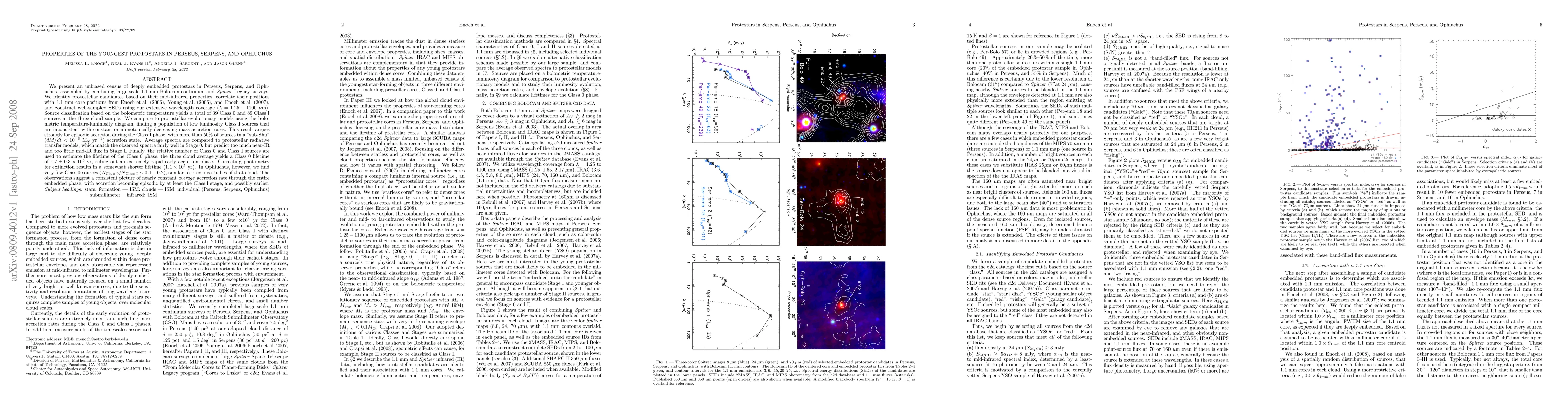 This study catalogs and analyzes the youngest protostars in Perseus, Serpens, and Ophiuchus, identifying 39 Class 0 and 89 Class I sources. It finds evidence of episodic accretion in Class I protostars, suggesting a nearly constant average accretion rate through the embedded phase, with significant implications for protostellar evolution models.