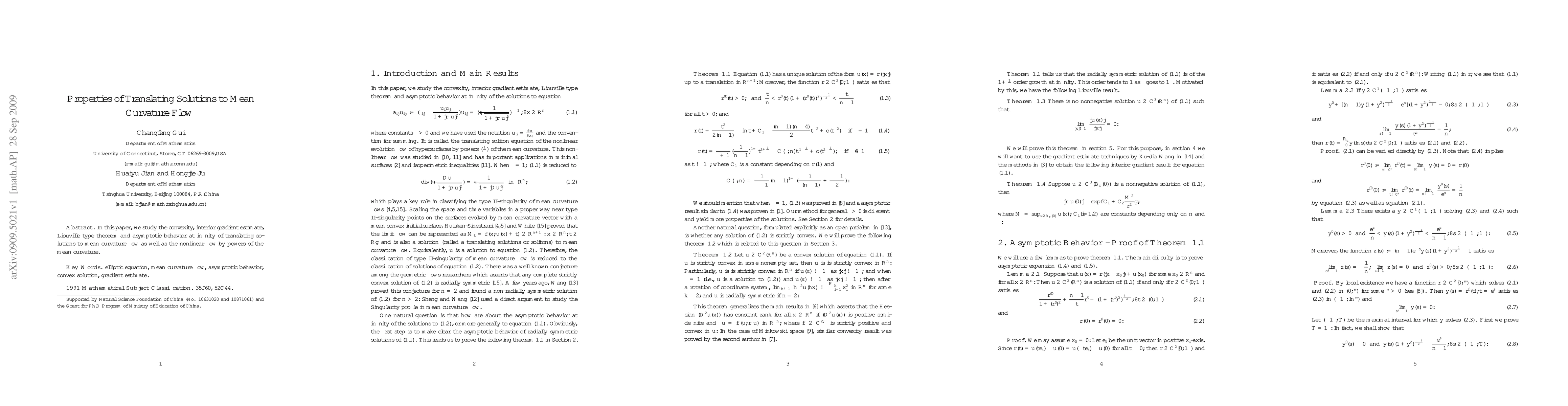 This paper investigates the properties of translating solutions to mean curvature flow, focusing on convexity, interior gradient estimates, Liouville-type theorems, and asymptotic behavior, as well as exploring the nonlinear flow by powers of the mean curvature.