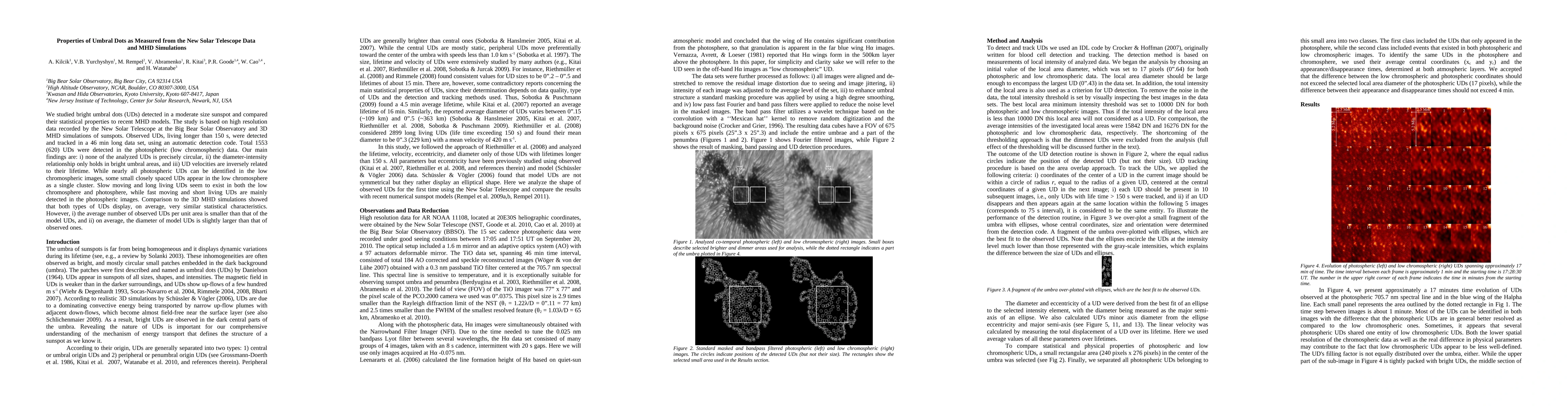We studied bright umbral dots (UDs) detected in a moderate size sunspot and compared their statistical properties to recent MHD models. The study is based on high resolution data recorded by the New Solar Telescope at the Big Bear Solar Observatory and 3D MHD simulations of sunspots. Observed UDs, living longer than 150 s, were detected and tracked in a 46 min long data set, using an automatic detection code. Total 1553 (620) UDs were detected in the photospheric (low chromospheric) data. Our main findings are: i) none of the analyzed UDs is precisely circular, ii) the diameter-intensity relationship only holds in bright umbral areas, and iii) UD velocities are inversely related to their lifetime. While nearly all photospheric UDs can be identified in the low chromospheric images, some small closely spaced UDs appear in the low chromosphere as a single cluster. Slow moving and long living UDs seem to exist in both the low chromosphere and photosphere, while fast moving and short living UDs are mainly detected in the photospheric images. Comparison to the 3D MHD simulations showed that both types of UDs display, on average, very similar statistical characteristics. However, i) the average number of observed UDs per unit area is smaller than that of the model UDs, and ii) on average, the diameter of model UDs is slightly larger than that of observed ones.