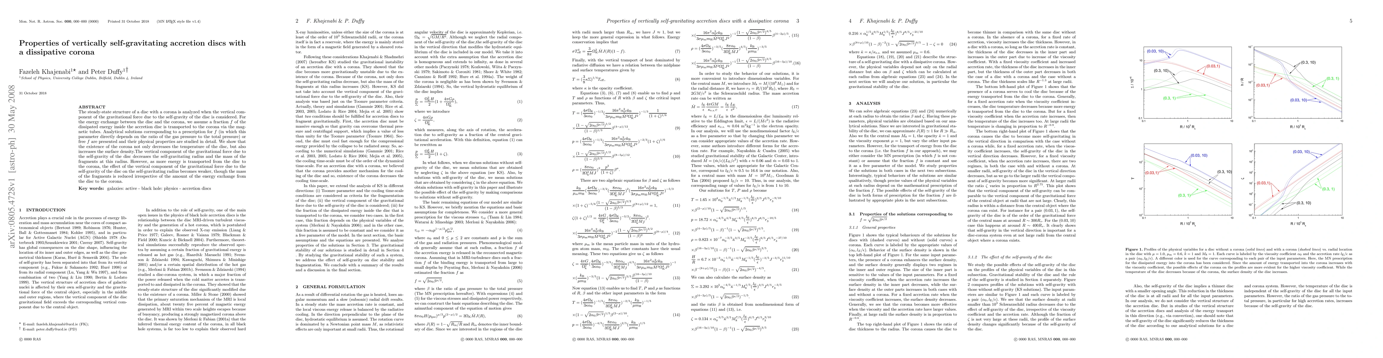 Research investigates how a dissipative corona affects the properties of vertically self-gravitating accretion discs, including temperature, surface density, and gravitational force.