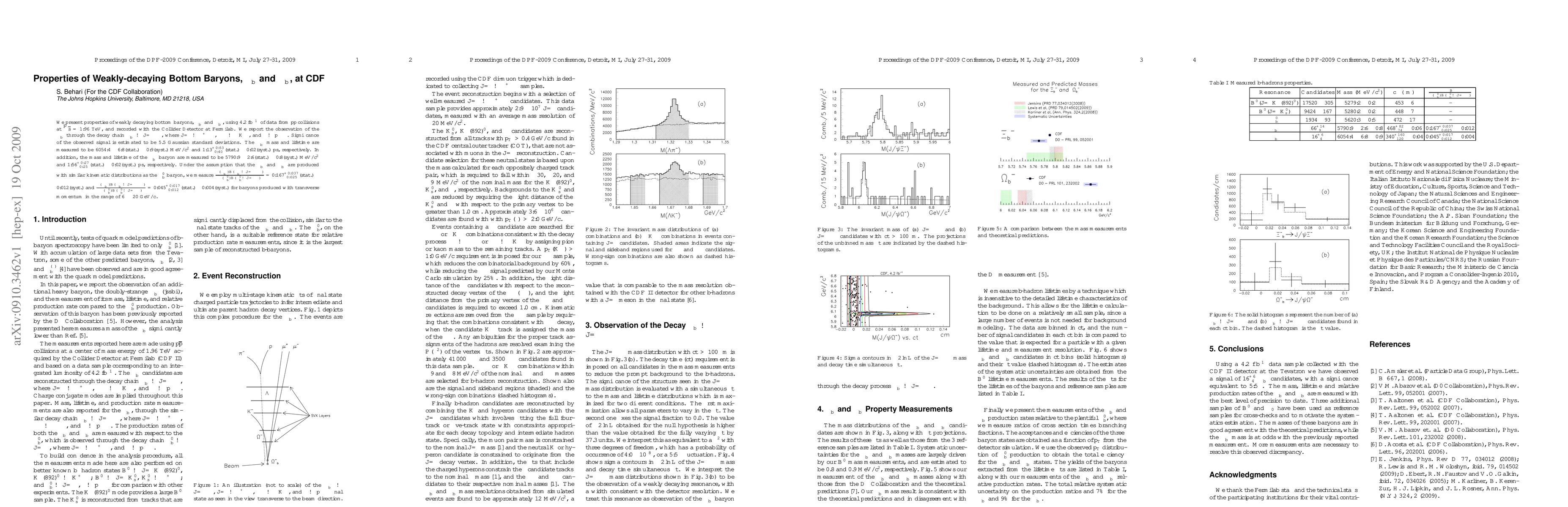 This paper reports the properties of weakly decaying bottom baryons, Xi_b^- and Omega_b^-, observed at the CDF detector using 4.2 fb^-1 of data from p-pbar collisions at 1.96 TeV. The Omega_b is observed with a significance of 5.5 standard deviations, and its mass and lifetime are measured to be 6054.4 MeV/c^2 and 1.13 ps, respectively.