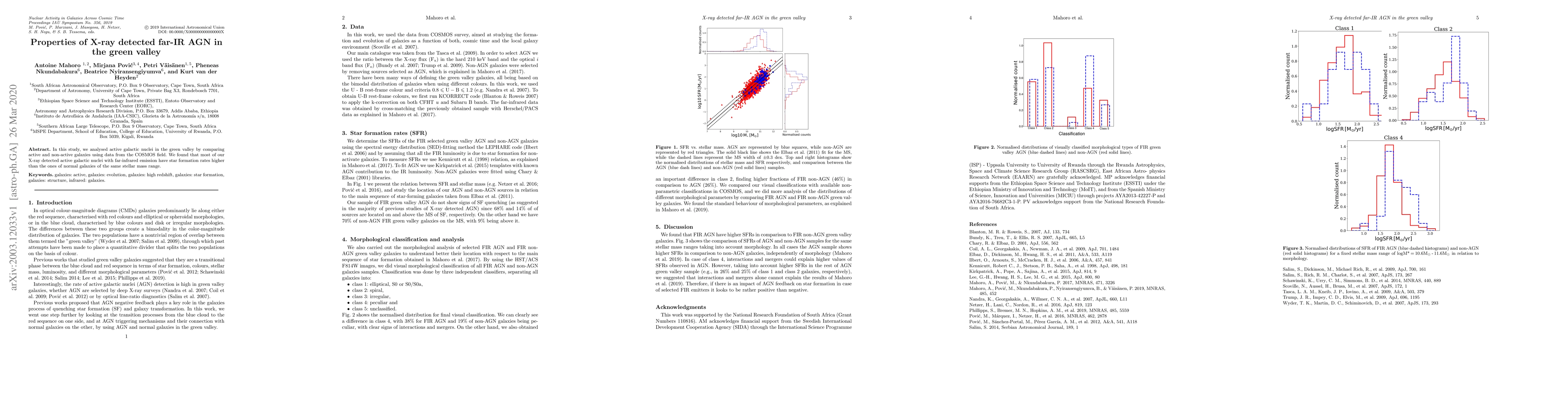 Summary: This study investigates X-ray detected far-IR active galactic nuclei (AGN) in the "green valley," finding that these AGN exhibit higher star formation rates compared to typical galaxies of similar stellar mass, suggesting an active role in galaxy evolution.