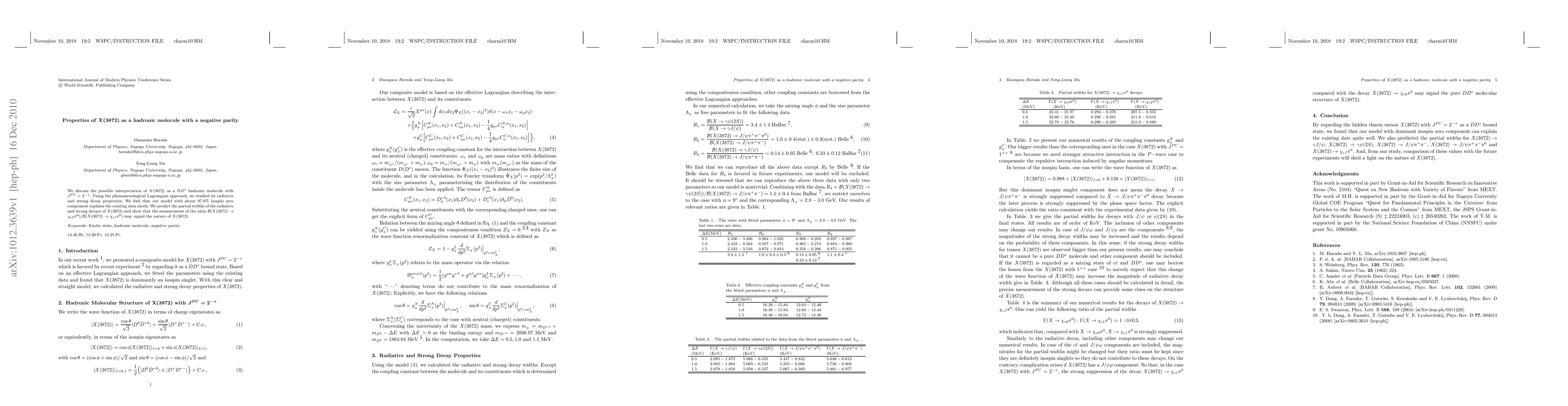 We discuss the possible interpretation of X(3872) as a $DD^{\ast}$ hadronic molecule with $J^{PC} = 2^{-+}$. Using the phenomenological Lagrangian approach, we studied its radiative and strong decay properties. We find that our model with about 97.6% isospin zero component explains the existing data nicely. We predict the partial widths of the radiative and strong decays of X(3872) and show that the measurement of the ratio $\mathcal{B}(X(3872) \to \chi_{c0}\pi^0)/\mathcal{B}(X(3872) \to \chi_{c1}\pi^0)$ may signal the nature of X(3872).