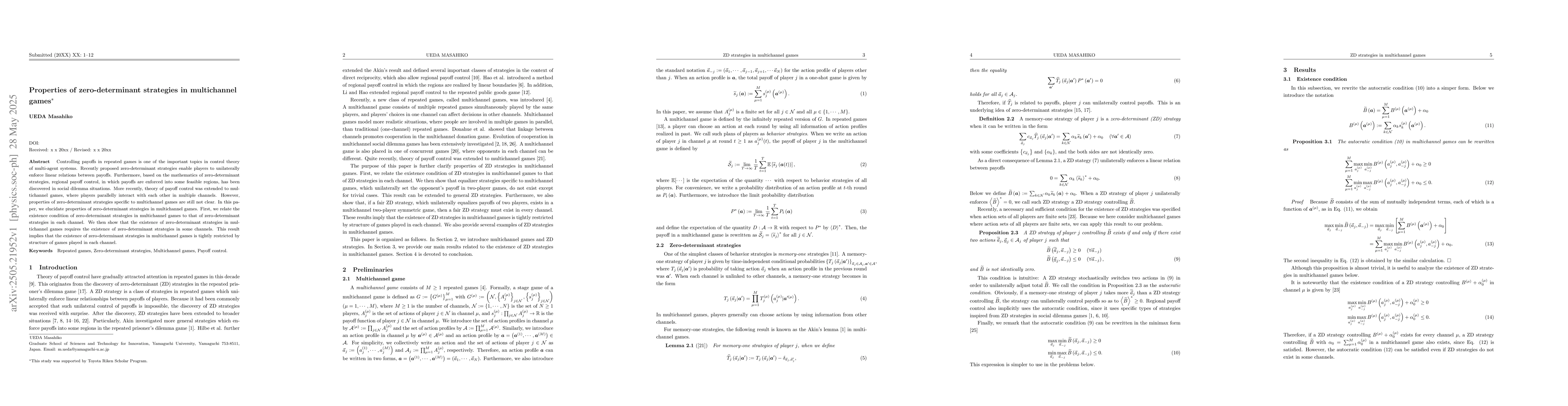 The paper presents a detailed analysis of zero-determinant strategies in multichannel games, establishing a relationship between their existence in multichannel games and individual channels.