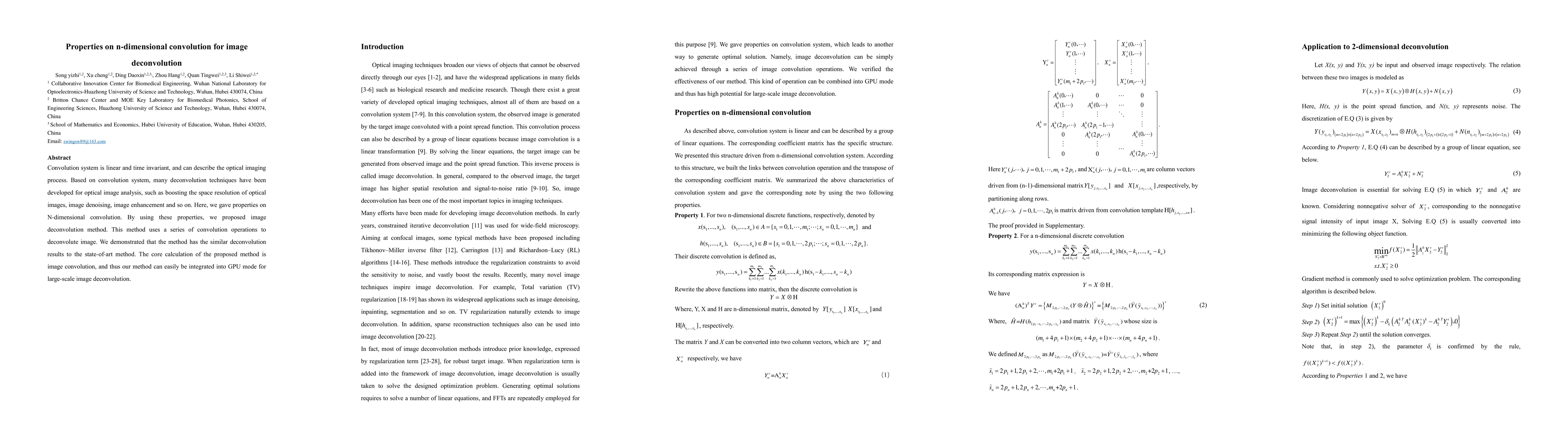 This paper proposes a method for image deconvolution using N-dimensional convolution, achieving similar results to state-of-the-art methods with efficient GPU integration.
