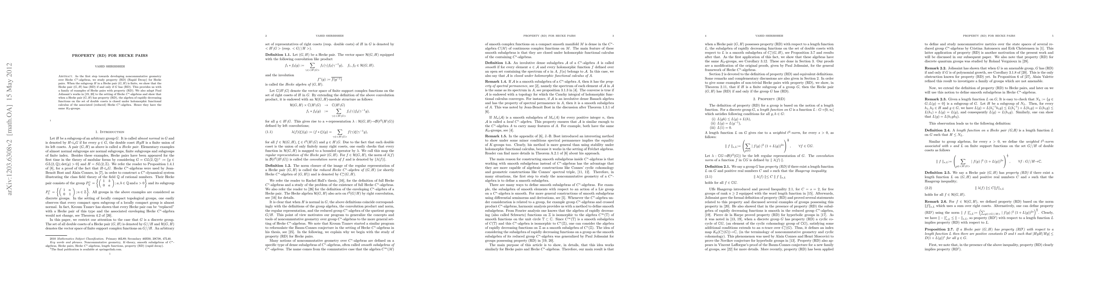 The paper introduces and develops the concept of property (RD) for Hecke pairs, linking it to the structure of associated Hecke C*-algebras and demonstrating its implications for K_0-groups.