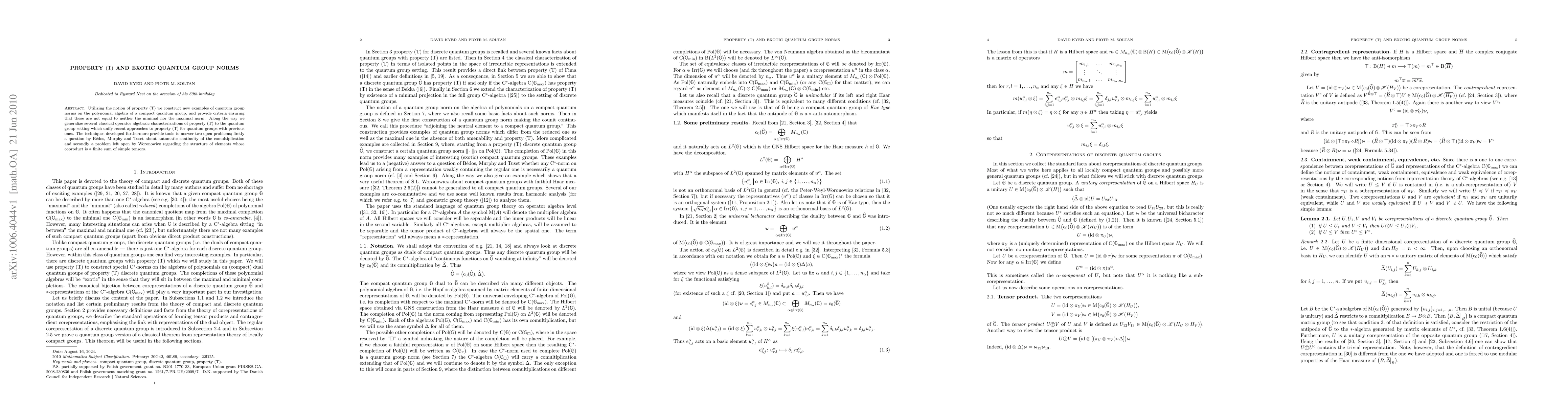 This research paper constructs new examples of quantum group norms on polynomial algebras of compact quantum groups, providing criteria for non-minimal and maximal norms and unifying classical operator algebraic characterizations of property (T) in the quantum setting.